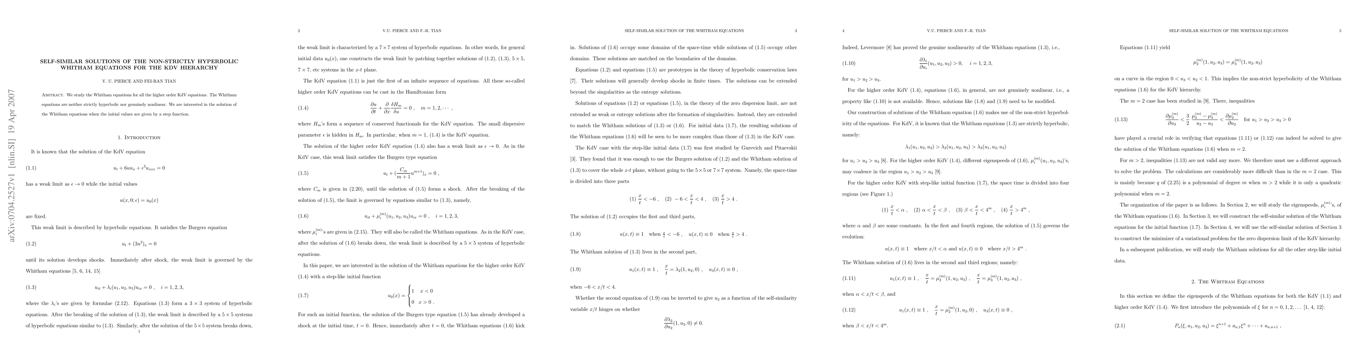 This paper investigates self-similar solutions of the non-strictly hyperbolic Whitham equations associated with the KdV hierarchy, focusing on scenarios where initial conditions are defined by a step function. The study aims to understand the behavior of these equations beyond strictly hyperbolic frameworks.