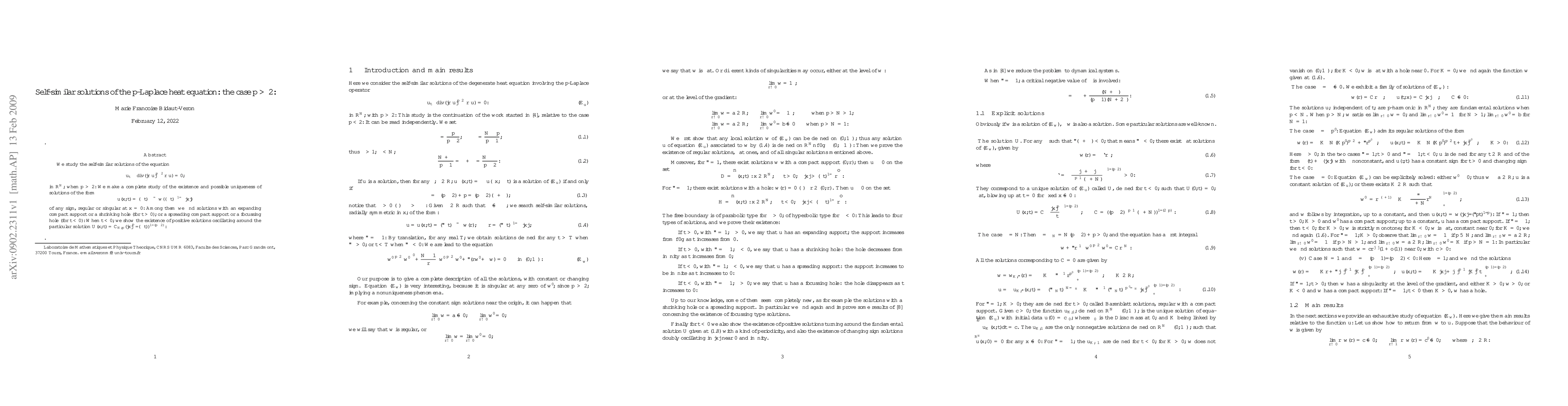 We study the self-similar solutions of the equation \[ u_{t}-div(| \nabla u| ^{p-2}\nabla u)=0, \] in $\mathbb{R}^{N},$ when $p>2.$ We make a complete study of the existence and possible uniqueness of solutions of the form \[ u(x,t)=(\pm t)^{-\alpha/\beta}w((\pm t)^{-1/\beta}| x|) \] of any sign, regular or singular at $x=0.$ Among them we find solutions with an expanding compact support or a shrinking hole (for $t>0),$ or a spreading compact support or a focussing hole (for $t<0).$ When $t<0,$ we show the existence of positive solutions oscillating around the particular solution $U(x,t)=C_{N,p}(| x| ^{p}/(-t))^{1/(p-2)}.$
