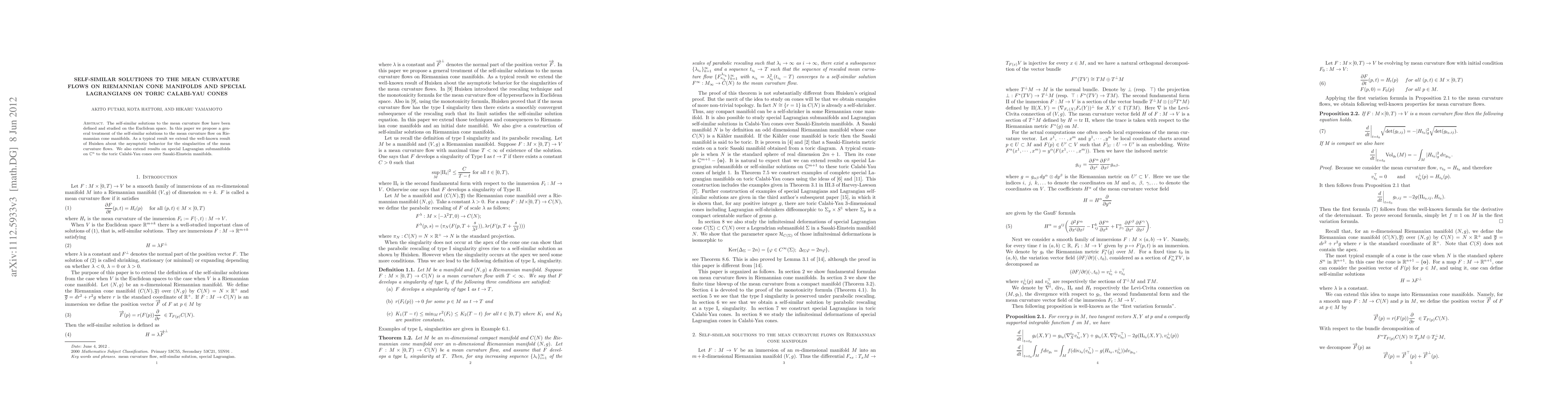 This paper explores self-similar solutions to mean curvature flows on Riemannian cone manifolds, extending Huisken's results on singularity behavior. It also generalizes special Lagrangian submanifold results from $\mathbb C^n$ to toric Calabi-Yau cones over Sasaki-Einstein manifolds.