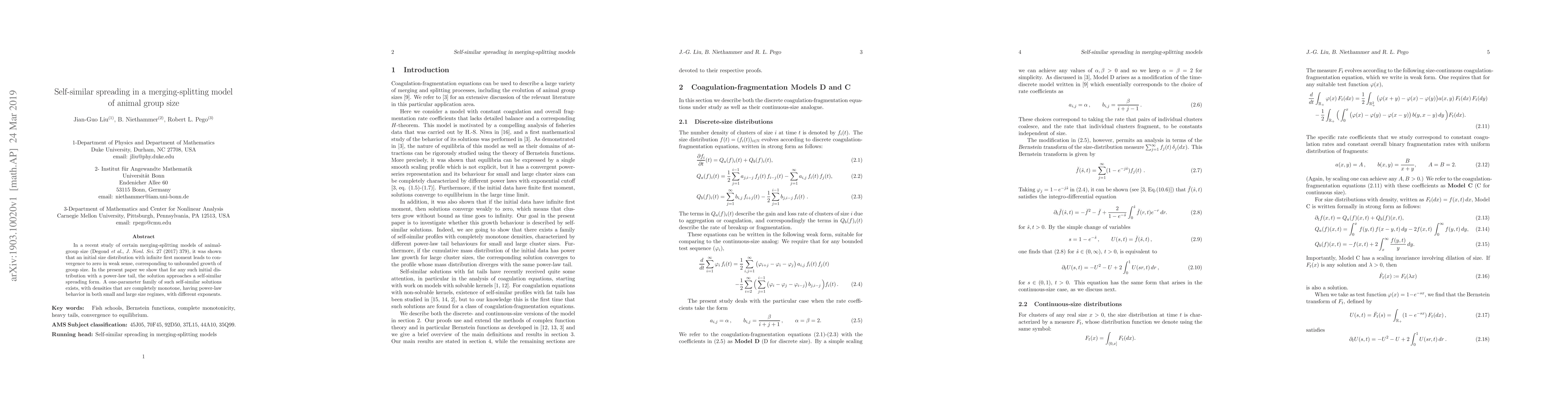 A study shows that animal group size follows a self-similar spreading form when starting with an initial distribution having a power-law tail, leading to unbounded growth.
