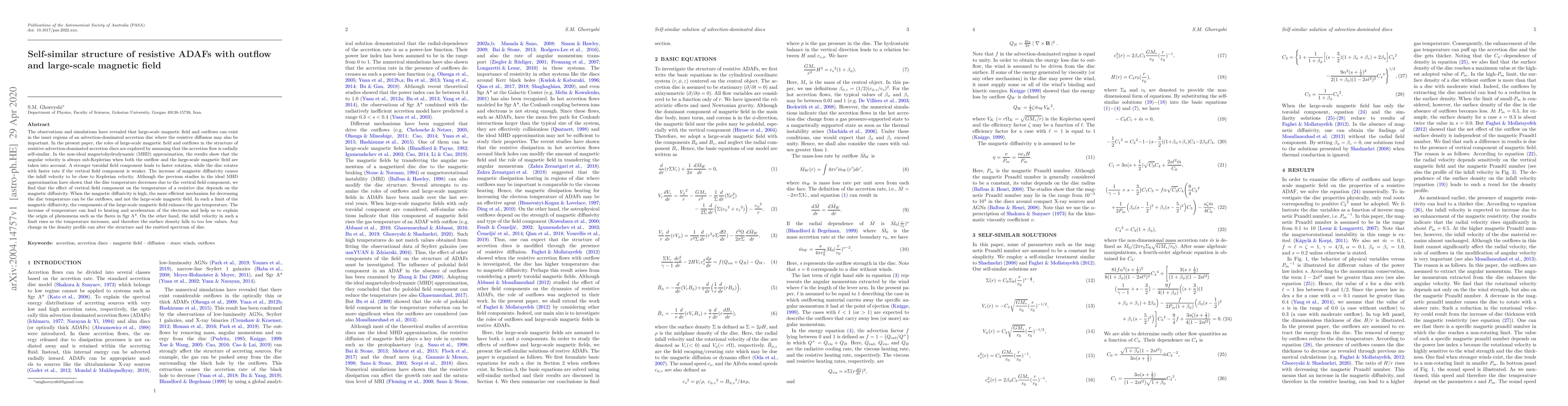 This paper investigates the self-similar structure of resistive advection-dominated accretion flows (ADAFs) considering large-scale magnetic fields and outflows. It finds that the angular velocity is sub-Keplerian, and the disc's rotation rate is influenced by the magnetic field components and magnetic diffusivity, potentially explaining phenomena like flares in Sgr A*.