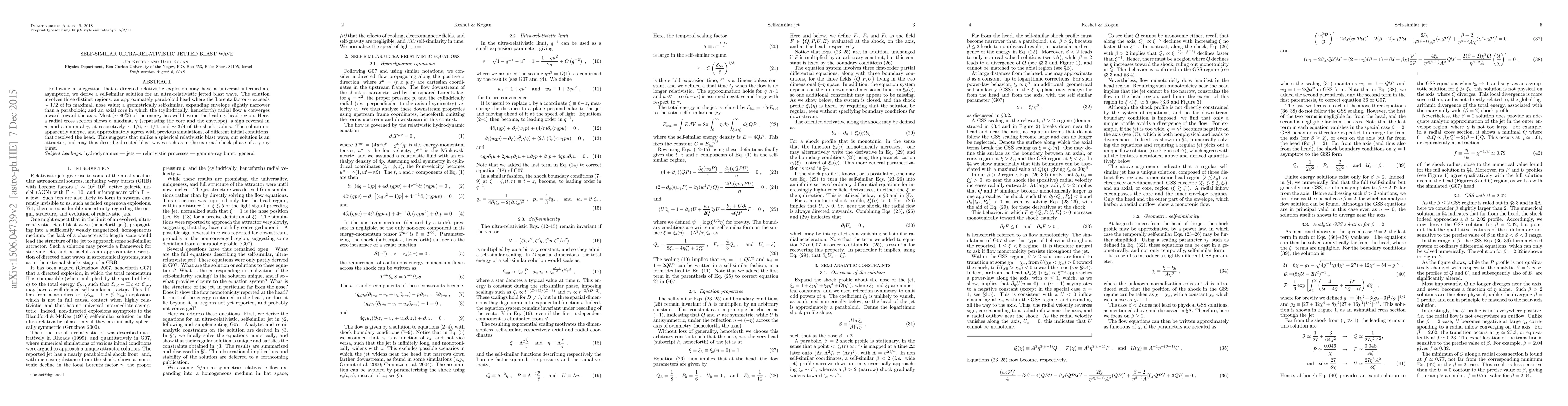 Following a suggestion that a directed relativistic explosion may have a universal intermediate asymptotic, we derive a self-similar solution for an ultra-relativistic jetted blast wave. The solution involves three distinct regions: an approximately paraboloid head where the Lorentz factor $\gamma$ exceeds $\sim1/2$ of its maximal, nose value; a geometrically self-similar, expanding envelope slightly narrower than a paraboloid; and an axial core in which the (cylindrically, henceforth) radial flow $u$ converges inward towards the axis. Most ($\sim 80\%$) of the energy lies well beyond the leading, head region. Here, a radial cross section shows a maximal $\gamma$ (separating the core and the envelope), a sign reversal in $u$, and a minimal $\gamma$, at respectively $\sim 1/6$, $\sim1/4$, and $\sim3/4$ of the shock radius. The solution is apparently unique, and approximately agrees with previous simulations, of different initial conditions, that resolved the head. This suggests that unlike a spherical relativistic blast wave, our solution is an attractor, and may thus describe directed blast waves such as in the external shock phase of a $\gamma$-ray burst.