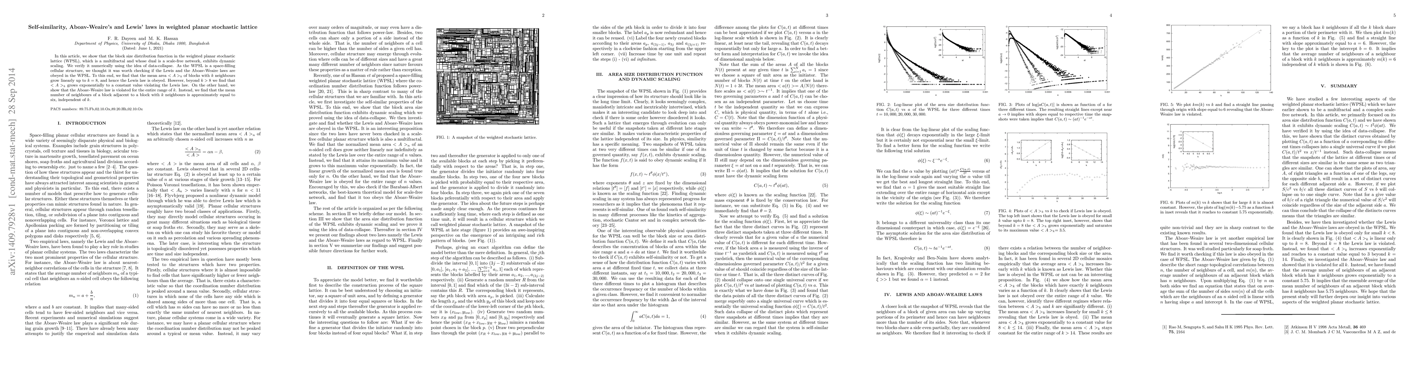 In this article, we show that the block size distribution function in the weighted planar stochastic lattice (WPSL), which is a multifractal and whose dual is a scale-free network, exhibits dynamic scaling. We verify it numerically using the idea of data-collapse. As the WPSL is a space-filling cellular structure, we thought it was worth checking if the Lewis and the Aboav-Weaire laws are obeyed in the WPSL. To this end, we find that the mean area $_k$ of blocks with $k$ neighbours grow linearly up to $k=8$, and hence the Lewis law is obeyed. However, beyond $k>8$ we find that $_k$ grows exponentially to a constant value violating the Lewis law. On the other hand, we show that the Aboav-Weaire law is violated for the entire range of $k$. Instead, we find that the mean number of neighbours of a block adjacent to a block with $k$ neighbours is approximately equal to six, independent of $k$.