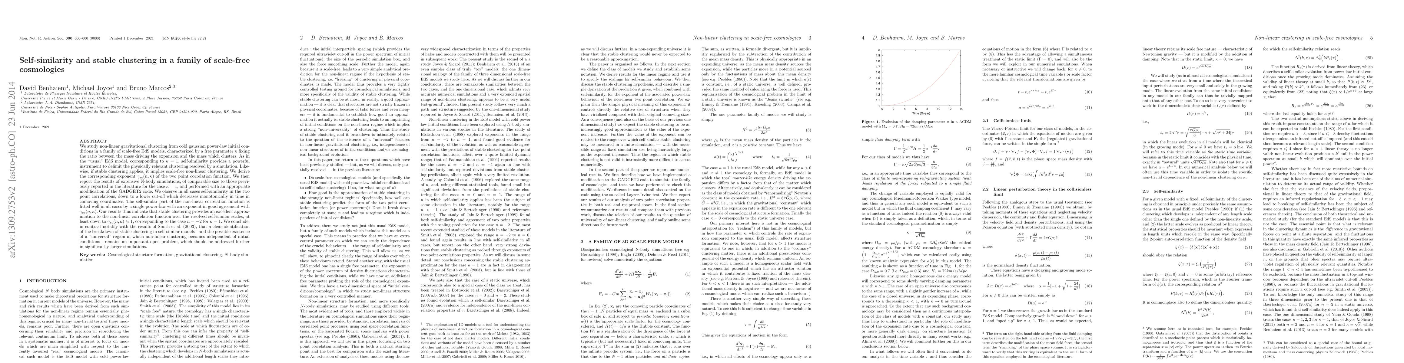 We study non-linear gravitational clustering from cold gaussian power-law initial conditions in a family of scale-free EdS models, characterized by a free parameter $\kappa$ fixing the ratio between the mass driving the expansion and the mass which clusters. As in the "usual" EdS model, corresponding to $\kappa=1$, self-similarity provides a powerful instrument to delimit the physically relevant clustering resolved by a simulation. Likewise, if stable clustering applies, it implies scale-free non-linear clustering. We derive the corresponding exponent $\gamma_{sc} (n, \kappa)$ of the two point correlation function. We then report the results of extensive N-body simulations, of comparable size to those previously reported in the literature for the case $\kappa=1$, and performed with an appropriate modification of the GADGET2 code. We observe in all cases self-similarity in the two point correlations, down to a lower cut-off which decreases monotonically in time in comoving coordinates. The self-similar part of the non-linear correlation function is fitted well in all cases by a single power-law with an exponent in good agreement with $\gamma_{sc} (n, \kappa)$. Our results thus indicate that stable clustering provides an excellent approximation to the non-linear correlation function over the resolved self-similar scales, at least down to $\gamma_{sc} (n, \kappa) \approx 1$, corresponding to the case $n=-2$ for $\kappa=1$. We conclude, in contrast notably with the results of Smith et al. (2003), that a clear identification of the breakdown of stable clustering in self-similar models - and the possible existence of a "universal" region in which non-linear clustering becomes independent of initial conditions - remains an important open problem, which should be addressed further in significantly larger simulations.