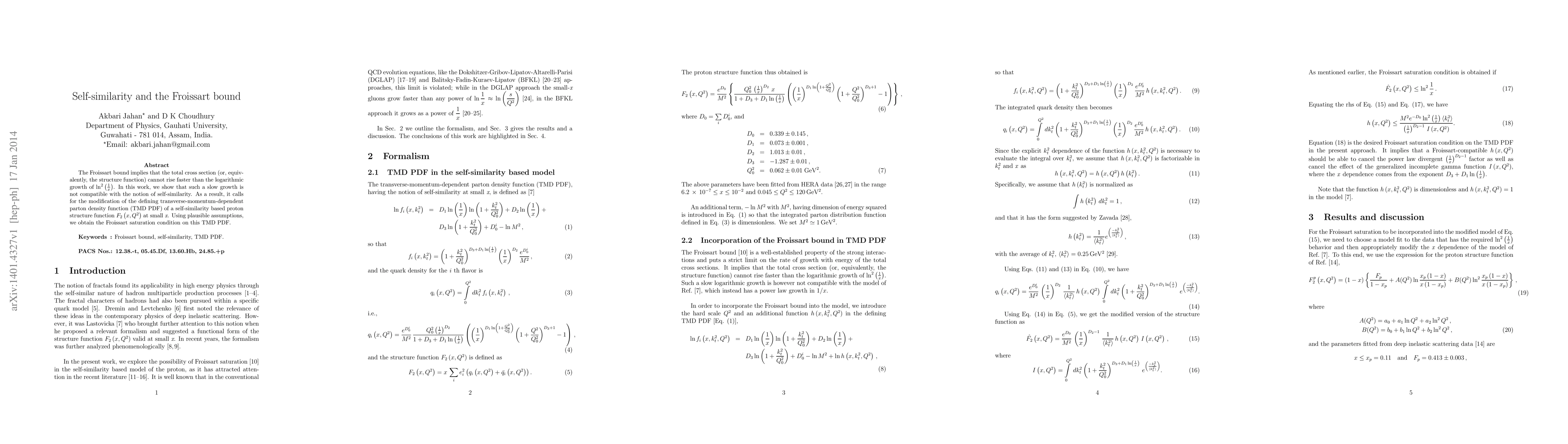 This paper demonstrates that the Froissart bound, which limits the growth of the total cross section, conflicts with the concept of self-similarity, necessitating a modification of the transverse-momentum-dependent parton density function for a self-similar proton structure function at small $x$. The authors derive a Froissart saturation condition under reasonable assumptions.