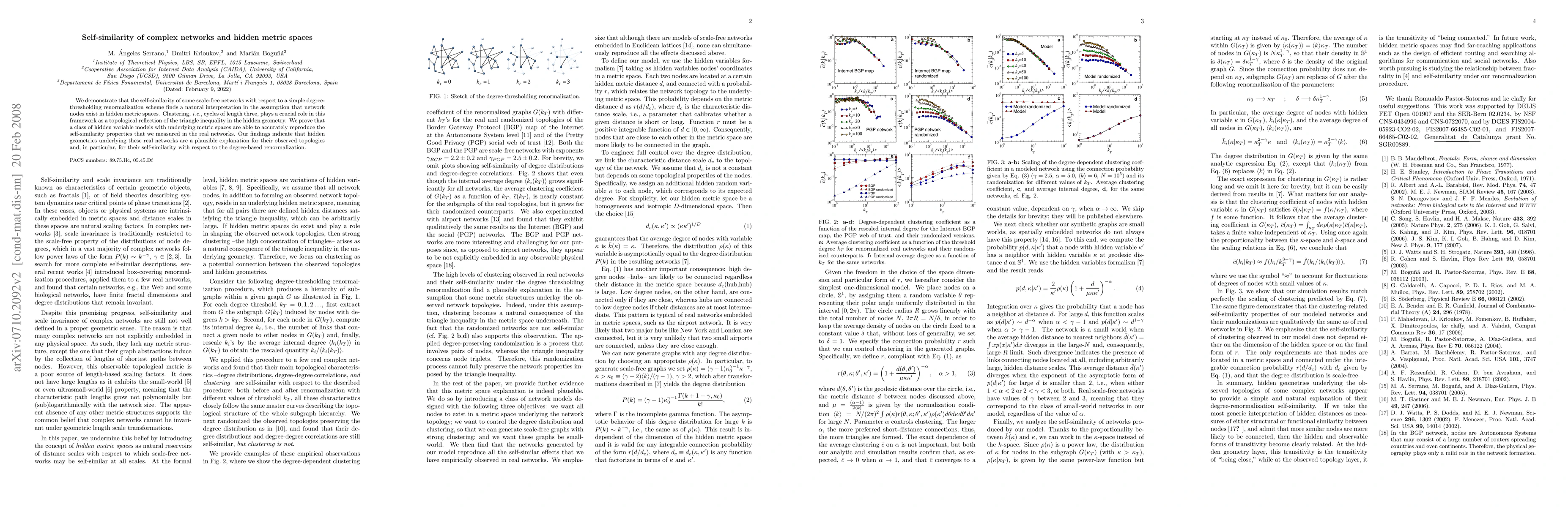 Research shows that complex networks' self-similarity can be explained by hidden metric spaces, with clustering cycles reflecting the triangle inequality in these geometries.