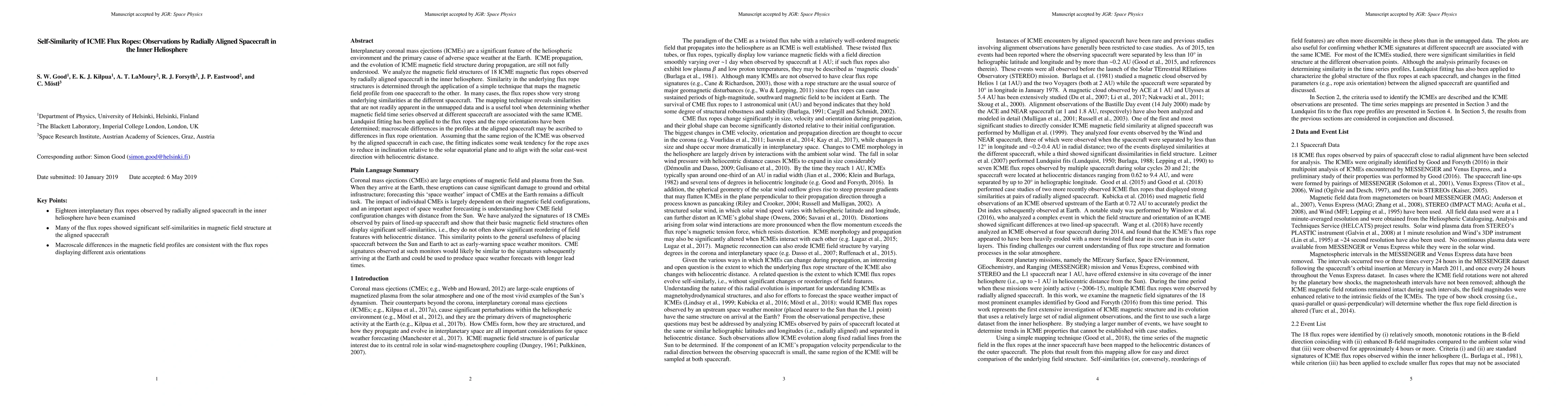 S. W. Good, E. K. J. Kilpua, J. Ruohotie et al.