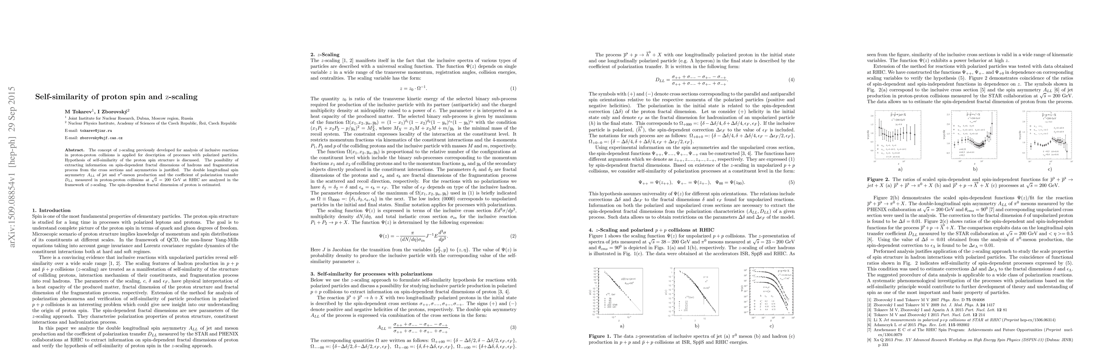 Researchers explore self-similarity in proton spin structure using z-scaling analysis from proton-proton collision data at RHIC, estimating a spin-dependent fractal dimension of the proton.