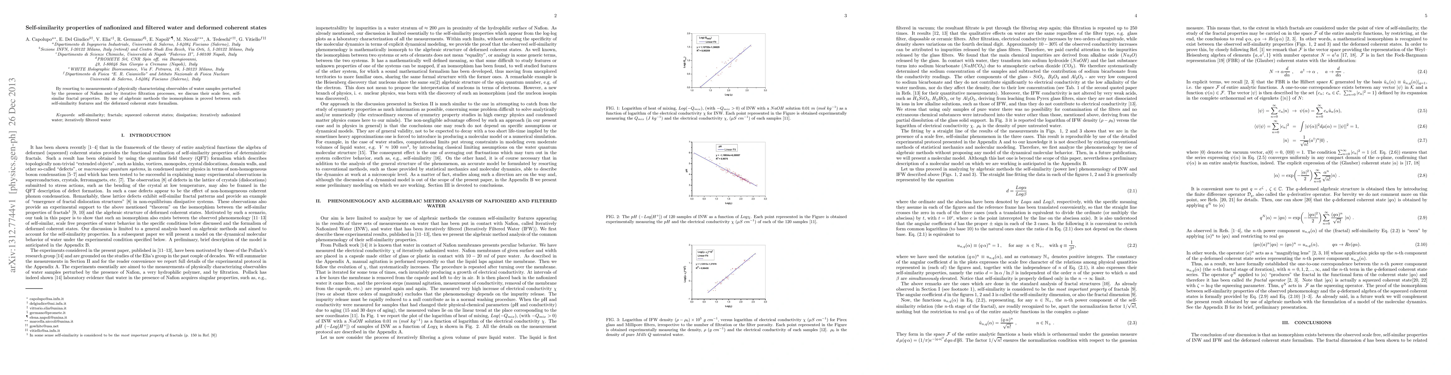 By resorting to measurements of physically characterizing observables of water samples perturbed by the presence of Nafion and by iterative filtration processes, we discuss their scale free, self-similar fractal properties. By use of algebraic methods the isomorphism is proved between such self-similarity features and the deformed coherent state formalism.
