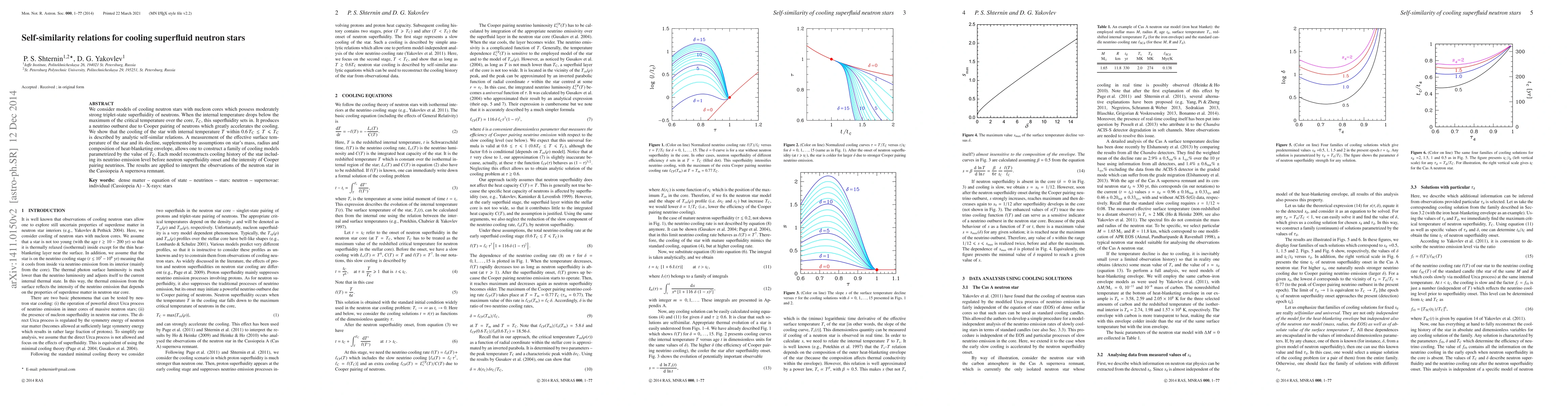 We consider models of cooling neutron stars with nucleon cores which possess moderately strong triplet-state superfluidity of neutrons. When the internal temperature drops below the maximum of the critical temperature over the core, $T_{\rm C}$, this superfluidity sets in. It produces a neutrino outburst due to Cooper pairing of neutrons which greatly accelerates the cooling. We show that the cooling of the star with internal temperature $T$ within $0.6\,T_{\rm C} \lesssim T \leq T_{\rm C}$ is described by analytic self-similar relations. A measurement of the effective surface temperature of the star and its decline, supplemented by assumptions on star's mass, radius and composition of heat-blanketing envelope, allows one to construct a family of cooling models parametrized by the value of $T_{\rm C}$. Each model reconstructs cooling history of the star including its neutrino emission level before neutron superfluidity onset and the intensity of Cooper pairing neutrinos. The results are applied to interpret the observations of the neutron star in the Cassiopeia A supernova remnant.