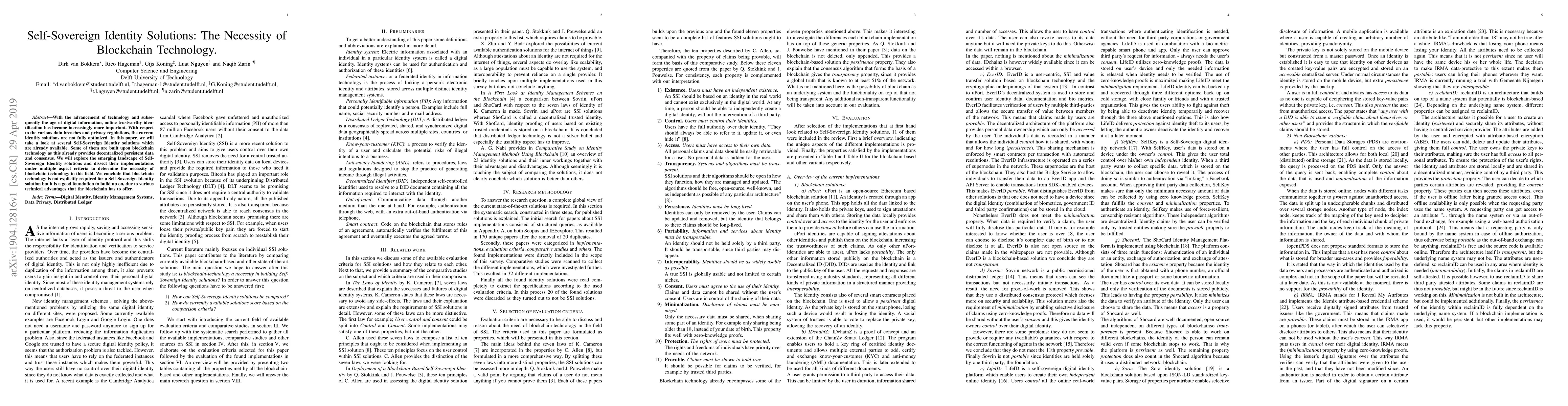 This paper examines Self-Sovereign Identity solutions, highlighting that while blockchain technology offers significant technical advantages, it is not strictly necessary for their implementation. The study concludes that blockchain provides a strong foundation for these solutions due to its decentralized and consensus-driven nature.