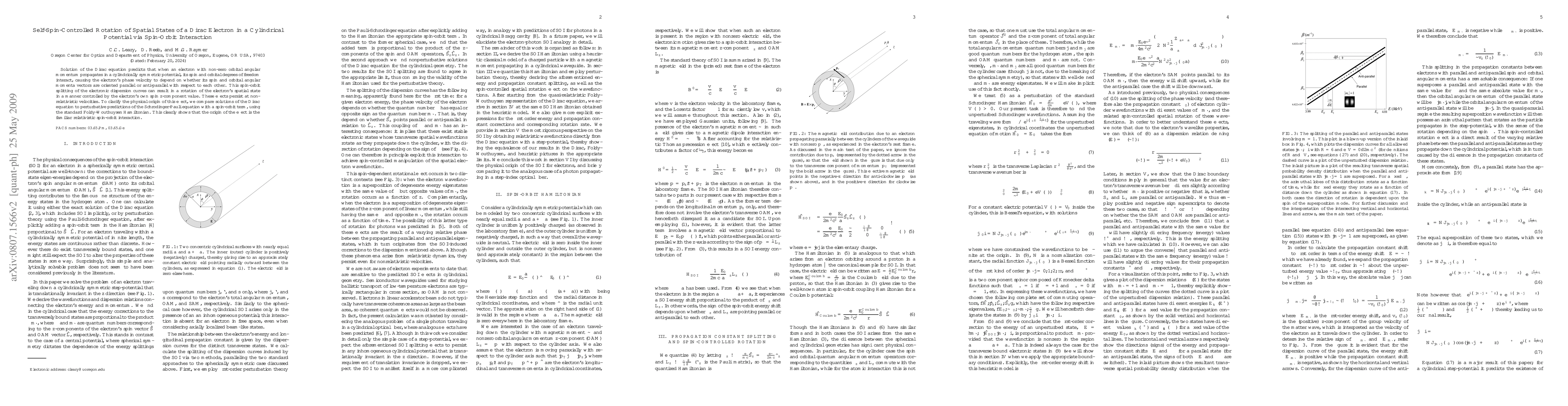 Solution of the Dirac equation predicts that when an electron with non-zero orbital angular momentum propagates in a cylindrically symmetric potential, its spin and orbital degrees of freedom interact, causing the electron's phase velocity to depend on whether its spin and orbital angular momenta vectors are oriented parallel or anti-parallel with respect to each other. This spin-orbit splitting of the electronic dispersion curves can result in a rotation of the electron's spatial state in a manner controlled by the electron's own spin z-component value. These effects persist at non-relativistic velocities. To clarify the physical origin of this effect, we compare solutions of the Dirac equation to perturbative predictions of the Schrodinger-Pauli equation with a spin-orbit term, using the standard Foldy-Wouthuysen Hamiltonian. This clearly shows that the origin of the effect is the familiar relativistic spin-orbit interaction.