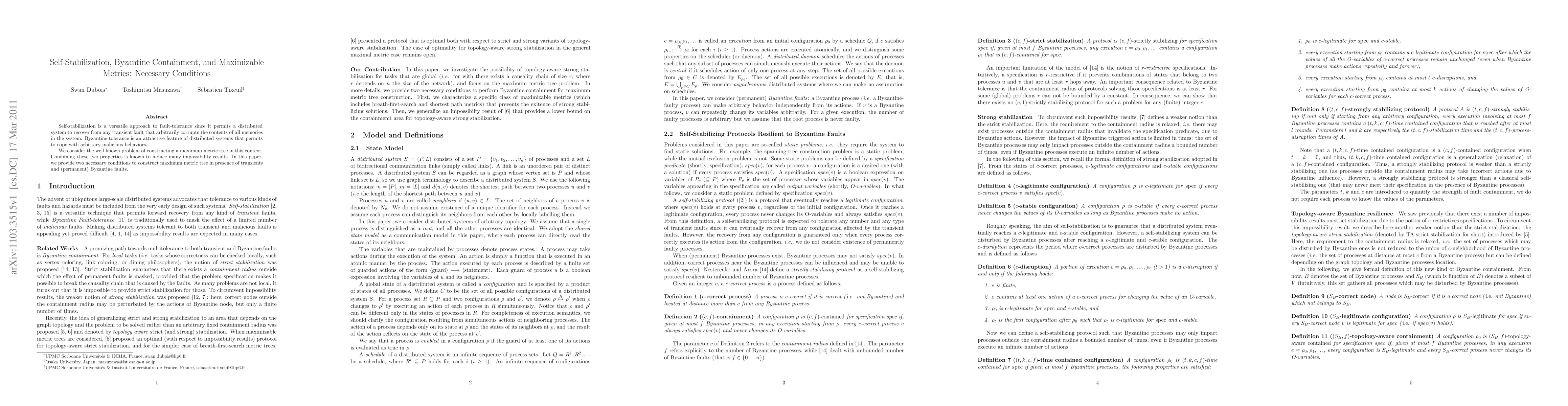 This paper explores the challenges of self-stabilization and Byzantine fault tolerance in distributed systems, focusing on the construction of maximum metric trees. It establishes two necessary conditions for achieving this in the presence of both transient and permanent Byzantine faults.