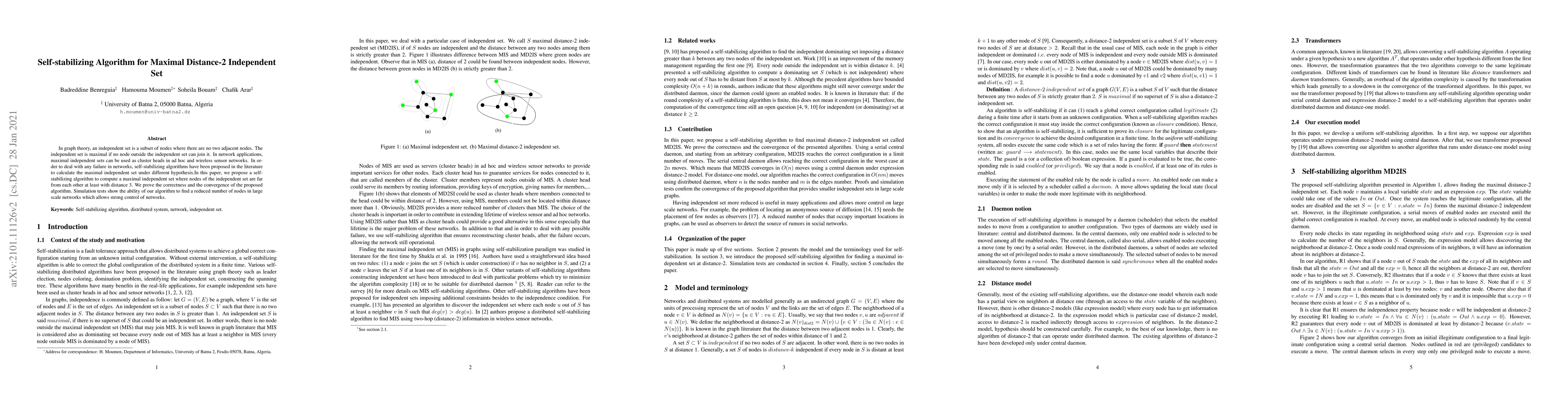 Researchers propose a self-stabilizing algorithm to find maximal independent sets in graph theory where nodes are at least 3 units apart, enabling strong control of networks in ad hoc and wireless sensor networks.