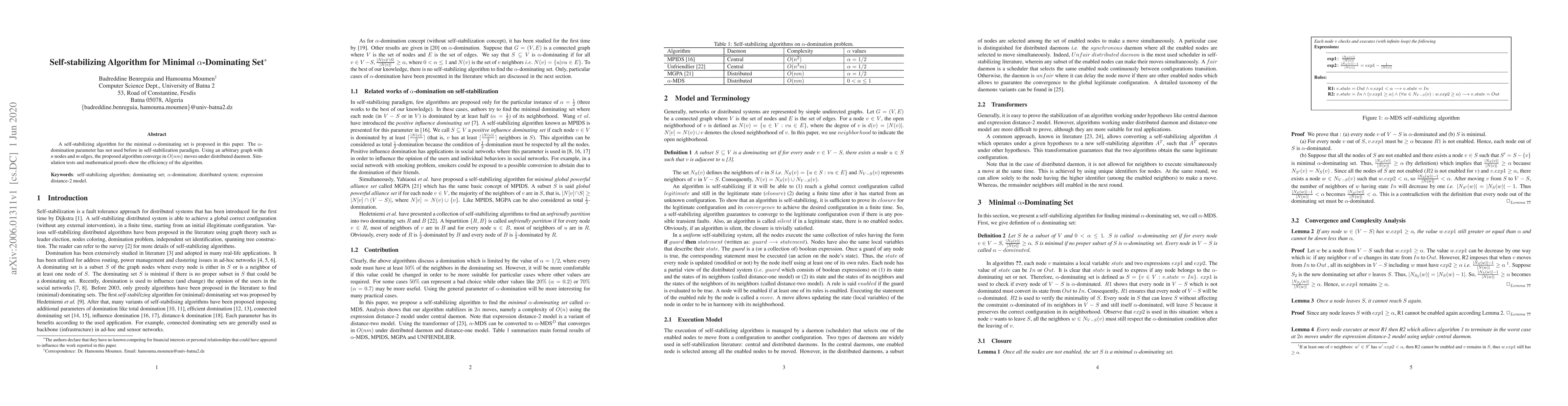 A new algorithm is proposed for finding a minimal dominating set in an arbitrary graph using self-stabilization, achieving convergence in O(nm) moves, with mathematical proofs and simulation tests supporting its efficiency.