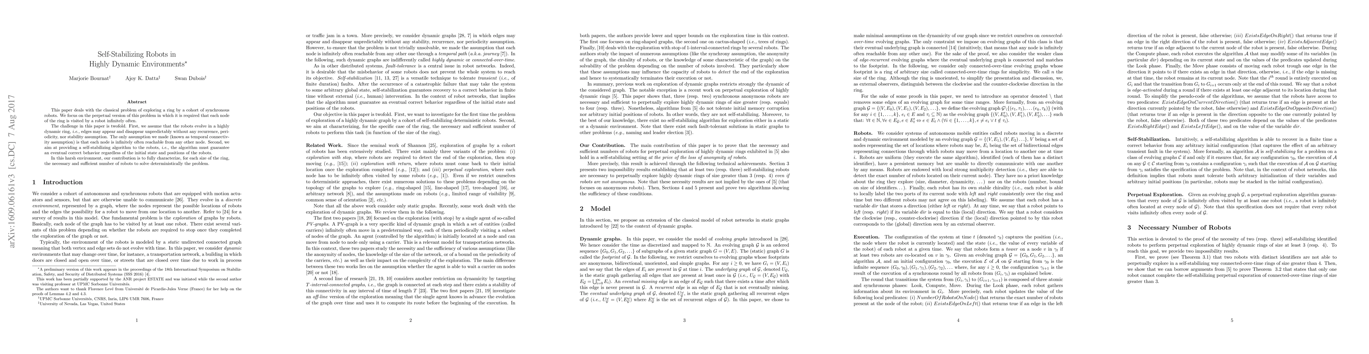 This paper addresses the self-stabilizing exploration of a dynamically changing ring by a group of synchronous robots, ensuring each node is visited infinitely often. It characterizes the exact number of robots required for deterministic problem-solving under the temporal connectivity assumption, regardless of initial conditions.