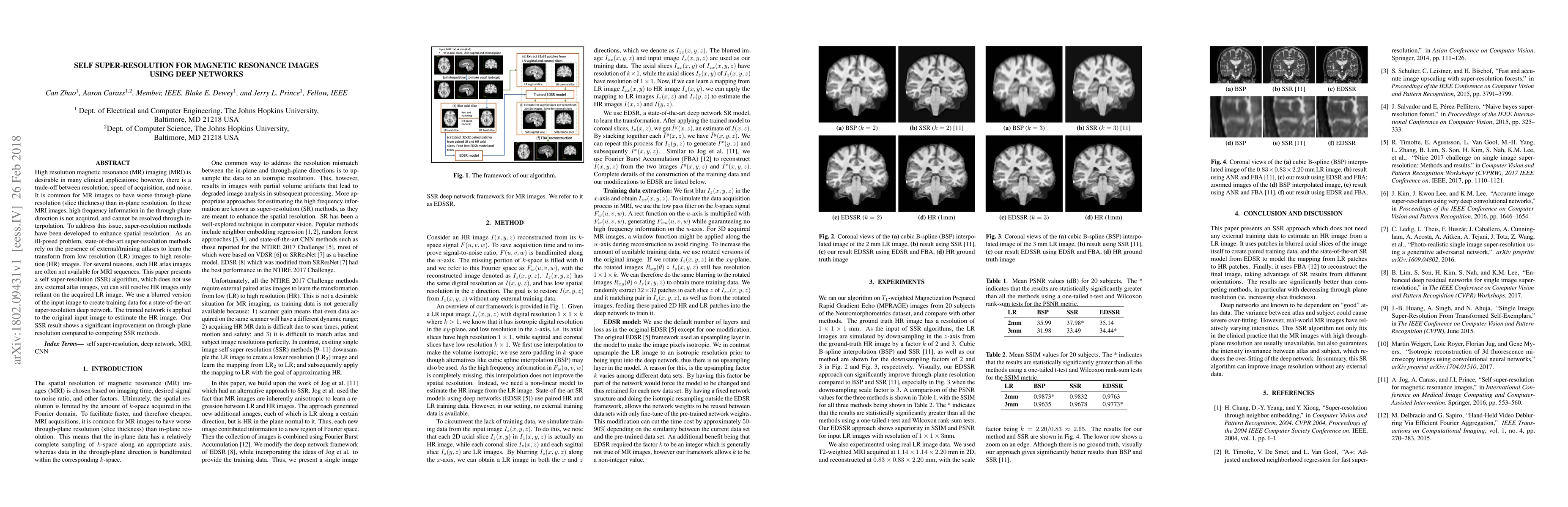 This paper introduces a self super-resolution algorithm for MRI that enhances through-plane resolution without requiring external high-resolution atlas images. It trains a deep network using blurred versions of input low-resolution images to generate high-resolution outputs, achieving significant improvements over existing methods.