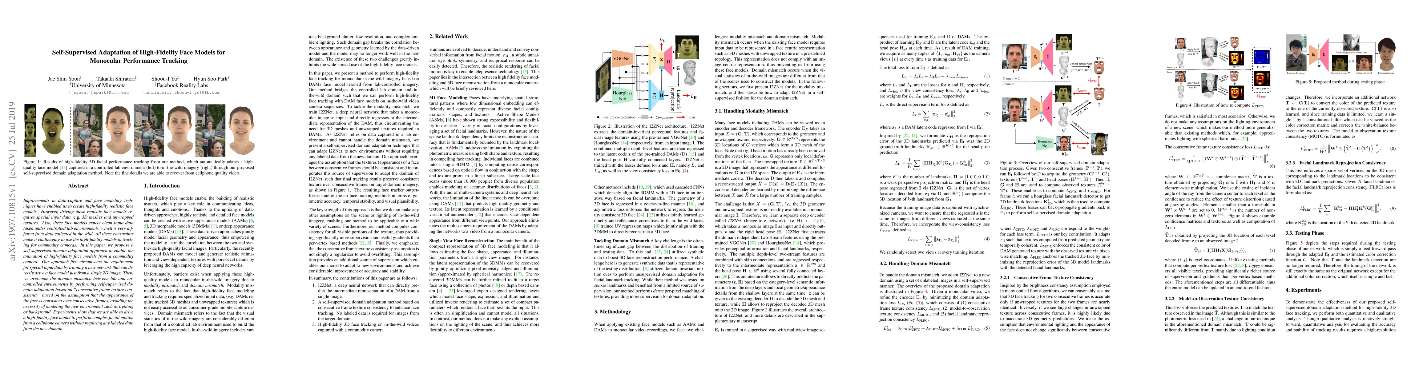 This paper proposes a self-supervised domain adaptation method to animate high-fidelity face models using only monocular images from commodity cameras. It achieves this by using a network trained to drive face models from single 2D images and self-supervised adaptation based on texture consistency across frames.