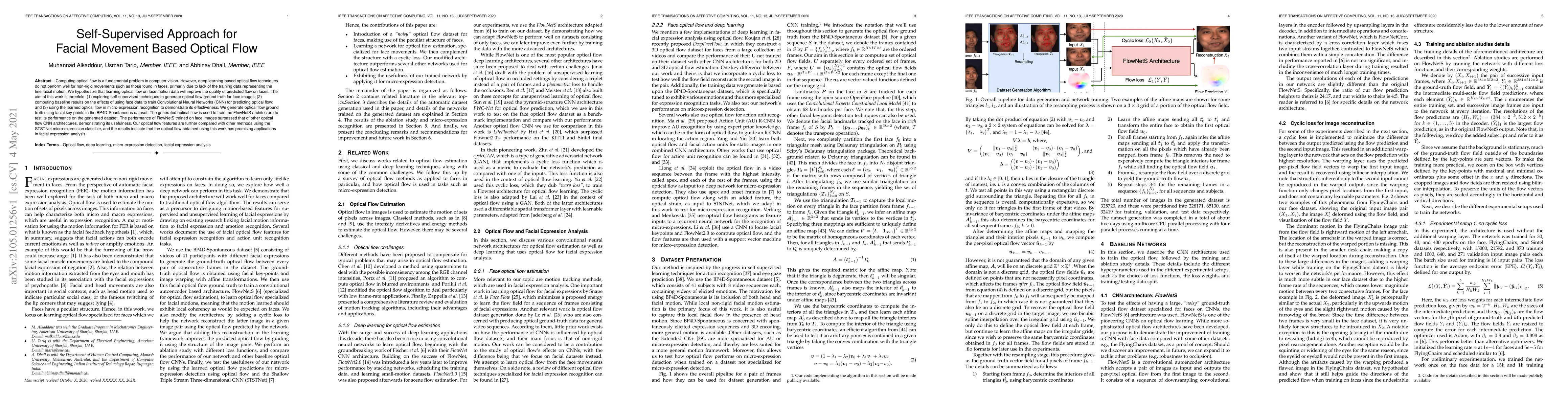 Computing optical flow is a fundamental problem in computer vision. However, deep learning-based optical flow techniques do not perform well for non-rigid movements such as those found in faces, primarily due to lack of the training data representing the fine facial motion. We hypothesize that learning optical flow on face motion data will improve the quality of predicted flow on faces. The aim of this work is threefold: (1) exploring self-supervised techniques to generate optical flow ground truth for face images; (2) computing baseline results on the effects of using face data to train Convolutional Neural Networks (CNN) for predicting optical flow; and (3) using the learned optical flow in micro-expression recognition to demonstrate its effectiveness. We generate optical flow ground truth using facial key-points in the BP4D-Spontaneous dataset. The generated optical flow is used to train the FlowNetS architecture to test its performance on the generated dataset. The performance of FlowNetS trained on face images surpassed that of other optical flow CNN architectures, demonstrating its usefulness. Our optical flow features are further compared with other methods using the STSTNet micro-expression classifier, and the results indicate that the optical flow obtained using this work has promising applications in facial expression analysis.
