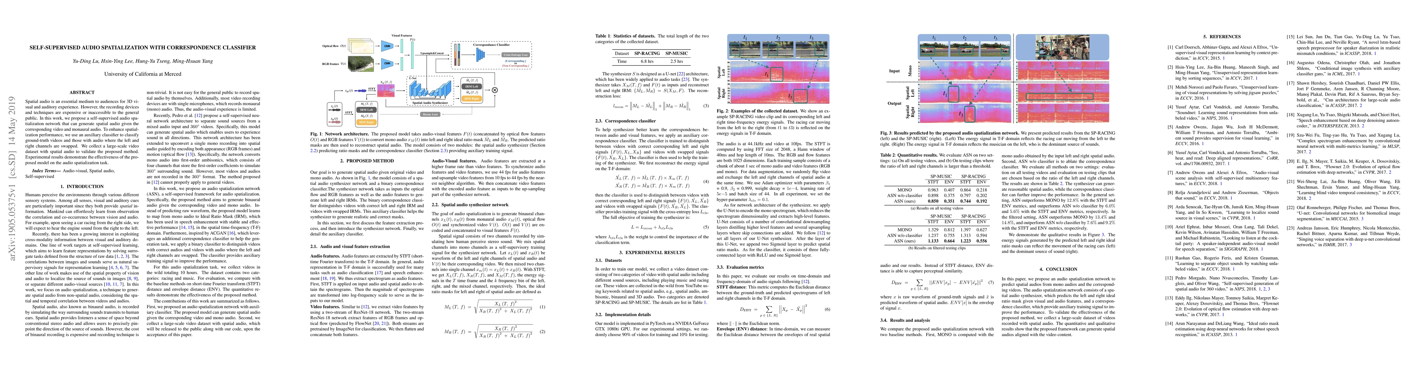 The paper introduces a novel self-supervised audio spatialization network using an auxiliary correspondence classifier for improved performance.