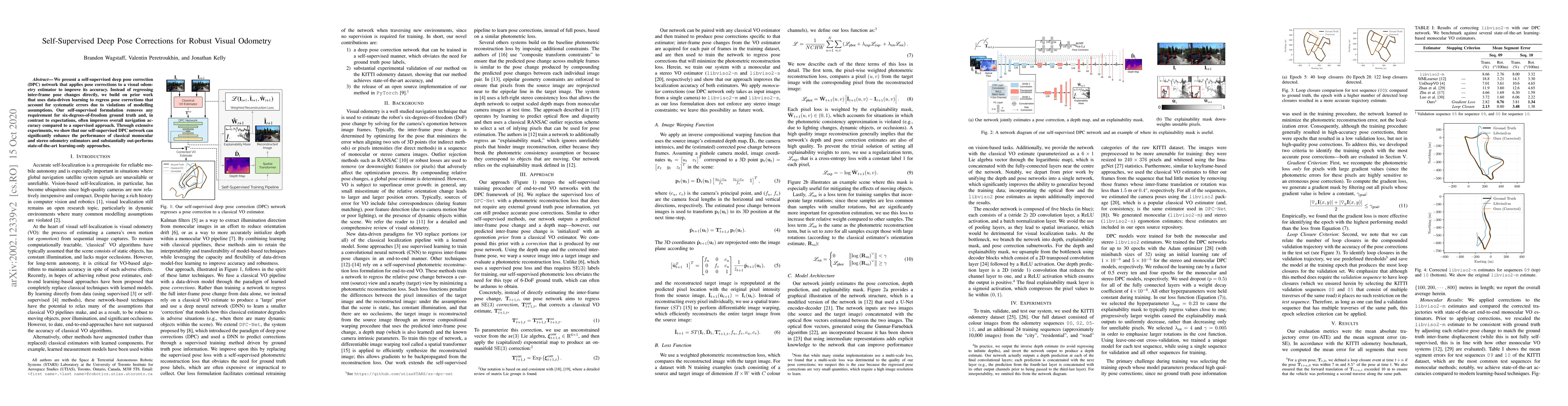 This paper introduces a self-supervised deep pose correction network to enhance visual odometry accuracy by correcting systematic errors without requiring ground truth data. The self-supervised approach outperforms supervised methods and significantly improves the performance of monocular and stereo odometry estimators.