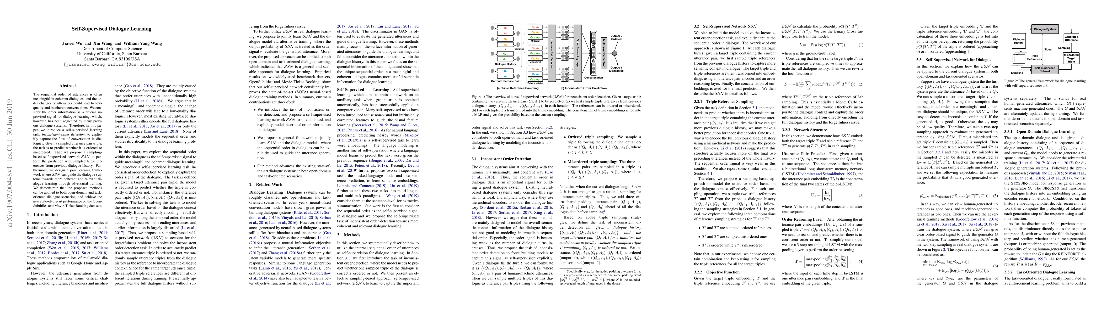 This paper introduces a self-supervised learning task, inconsistent order detection, to enhance dialogue coherence by capturing the sequential order of utterances. It proposes a sampling-based network, SSN, and a joint learning framework with adversarial training to improve dialogue systems, achieving state-of-the-art results on OpenSubtitles and Movie-Ticket Booking datasets.