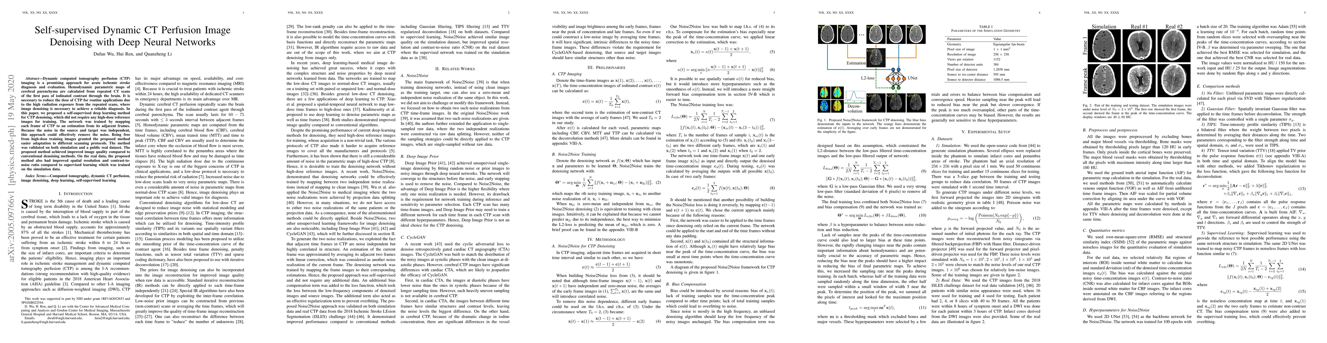 Researchers developed a self-supervised deep learning method for reducing noise in dynamic CT perfusion images without requiring high-dose reference images. The approach improved image quality and spatial resolution compared to conventional denoising methods.