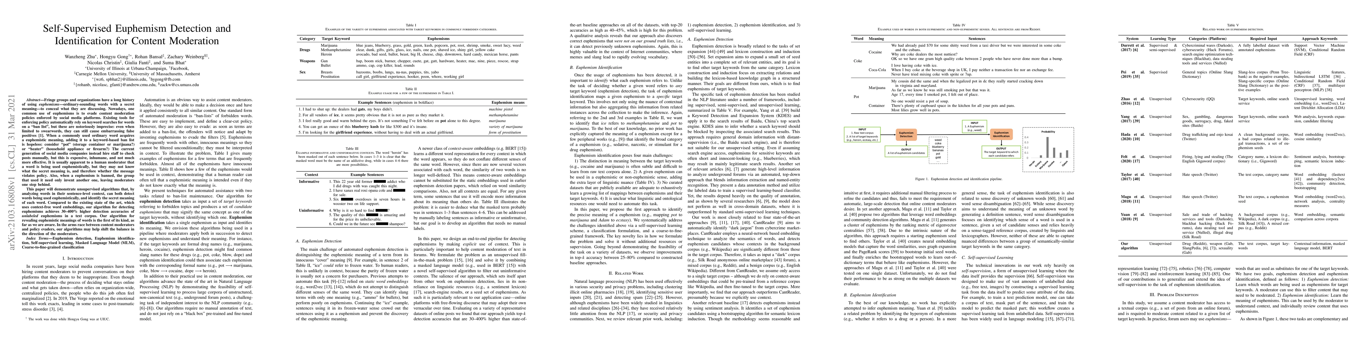 Fringe groups and organizations have a long history of using euphemisms--ordinary-sounding words with a secret meaning--to conceal what they are discussing. Nowadays, one common use of euphemisms is to evade content moderation policies enforced by social media platforms. Existing tools for enforcing policy automatically rely on keyword searches for words on a "ban list", but these are notoriously imprecise: even when limited to swearwords, they can still cause embarrassing false positives. When a commonly used ordinary word acquires a euphemistic meaning, adding it to a keyword-based ban list is hopeless: consider "pot" (storage container or marijuana?) or "heater" (household appliance or firearm?) The current generation of social media companies instead hire staff to check posts manually, but this is expensive, inhumane, and not much more effective. It is usually apparent to a human moderator that a word is being used euphemistically, but they may not know what the secret meaning is, and therefore whether the message violates policy. Also, when a euphemism is banned, the group that used it need only invent another one, leaving moderators one step behind. This paper will demonstrate unsupervised algorithms that, by analyzing words in their sentence-level context, can both detect words being used euphemistically, and identify the secret meaning of each word. Compared to the existing state of the art, which uses context-free word embeddings, our algorithm for detecting euphemisms achieves 30-400% higher detection accuracies of unlabeled euphemisms in a text corpus. Our algorithm for revealing euphemistic meanings of words is the first of its kind, as far as we are aware. In the arms race between content moderators and policy evaders, our algorithms may help shift the balance in the direction of the moderators.