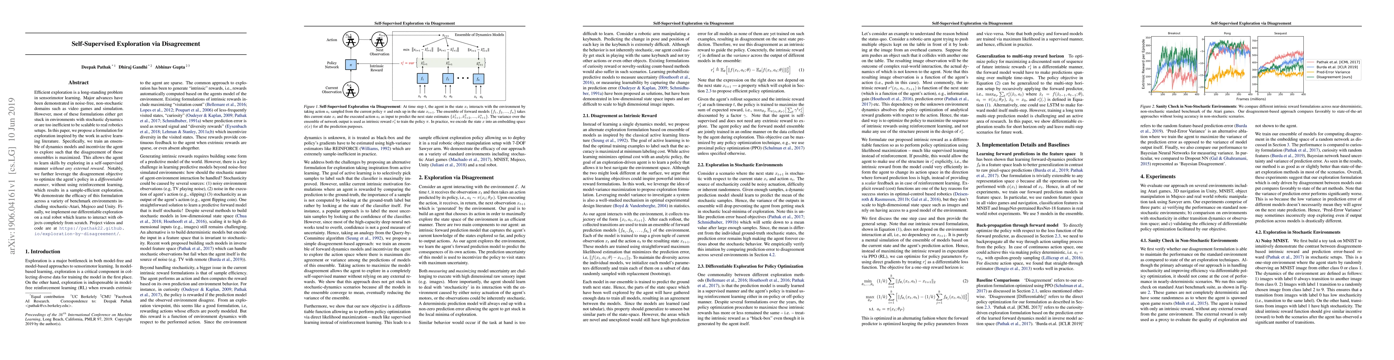 Researchers propose a novel method for self-supervised exploration in robotics by maximizing disagreement among ensemble dynamics models, achieving efficient learning without external rewards in real-world environments.