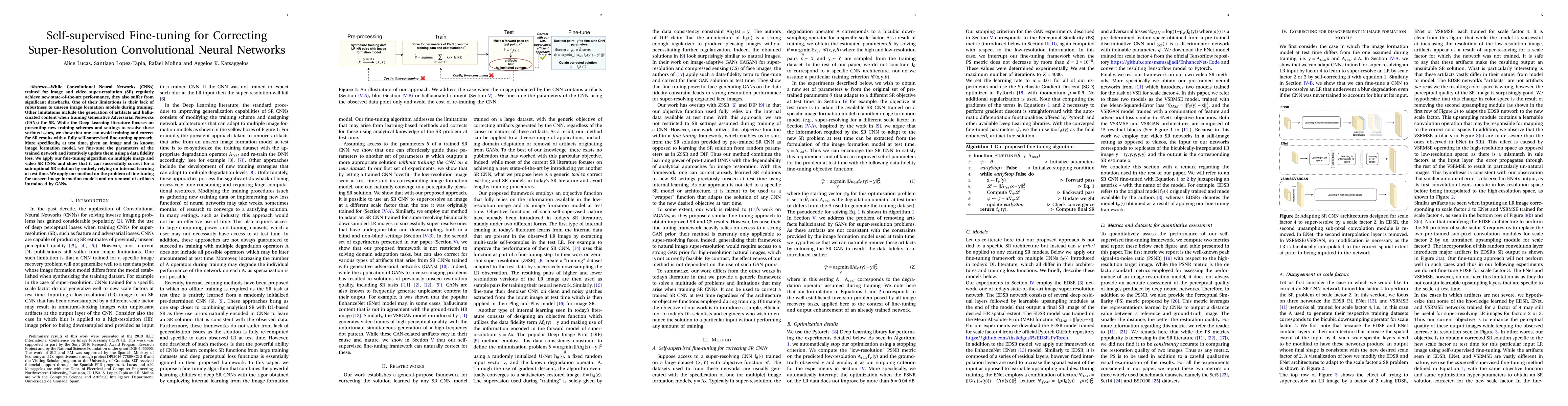 This paper proposes a self-supervised fine-tuning method to correct super-resolution (SR) results from CNNs, addressing issues like lack of robustness and artifact generation. The approach fine-tunes the network parameters at test time using a data fidelity loss, successfully correcting SR outputs without additional training.