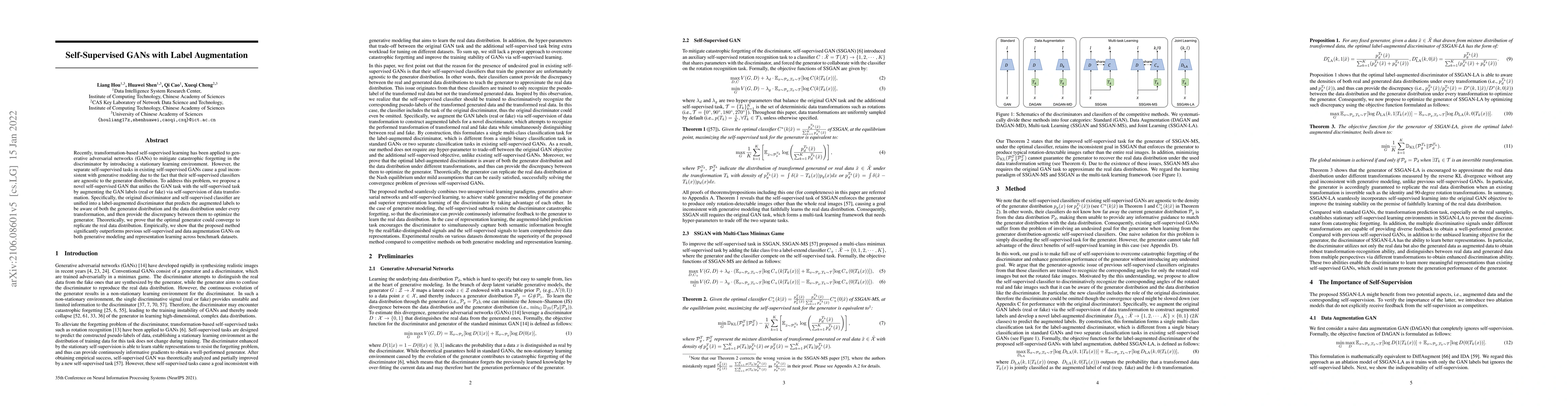 The paper proposes a self-supervised GAN with label augmentation that combines the GAN and self-supervised tasks to mitigate catastrophic forgetting, improving both generative modeling and representation learning. The unified label-augmented discriminator enhances the generator's ability to replicate the real data distribution, outperforming existing methods on benchmark datasets.