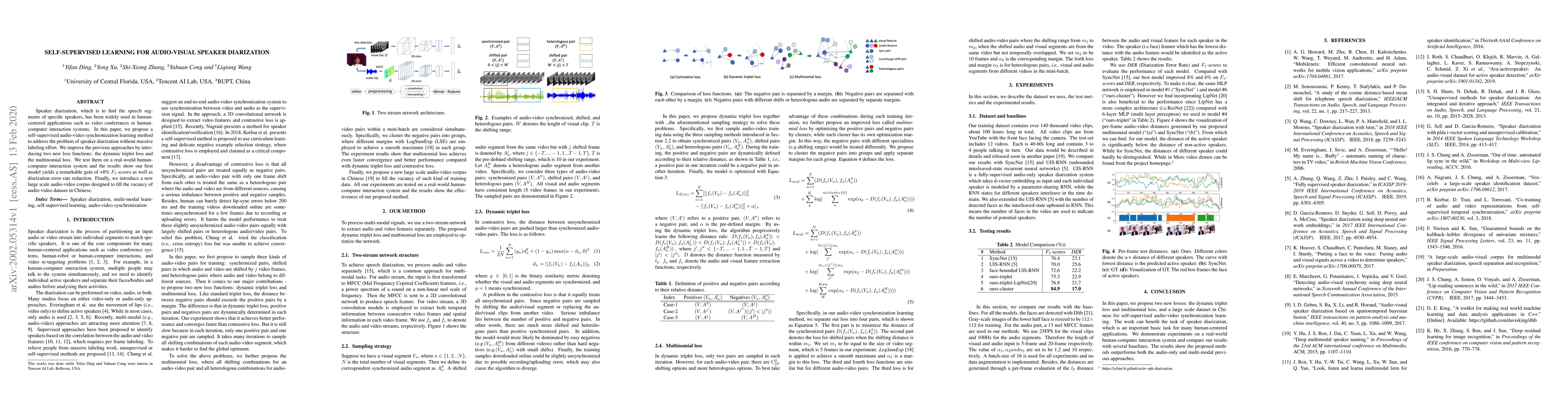 This paper proposes a self-supervised learning method for audio-visual speaker diarization, reducing the need for extensive labeling. It introduces dynamic triplet and multinomial loss functions, achieving an 8% improvement in F1-score and error rate reduction in a human-computer interaction system, and presents a new large-scale Chinese audio-video dataset.