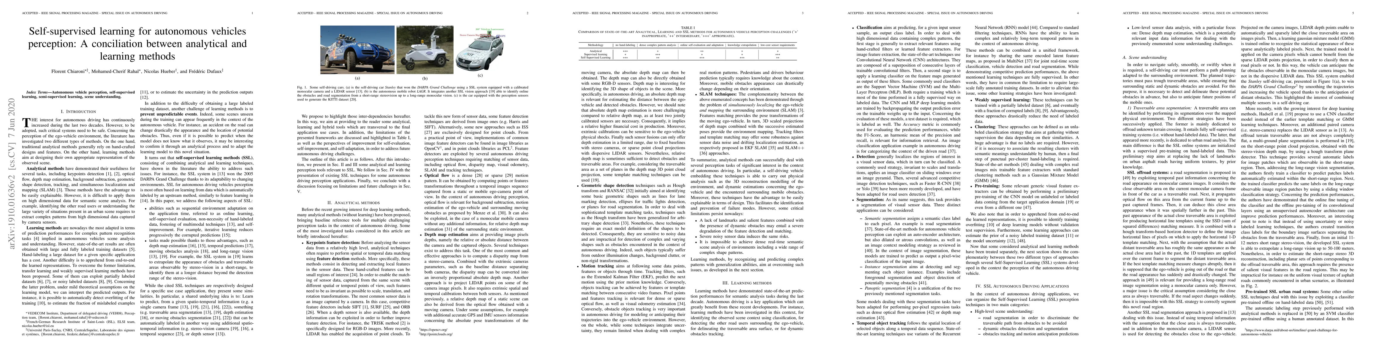 Self-supervised learning offers a promising alternative to supervised learning for autonomous vehicles perception, enabling them to learn on the go in varying environments without manual labeling.