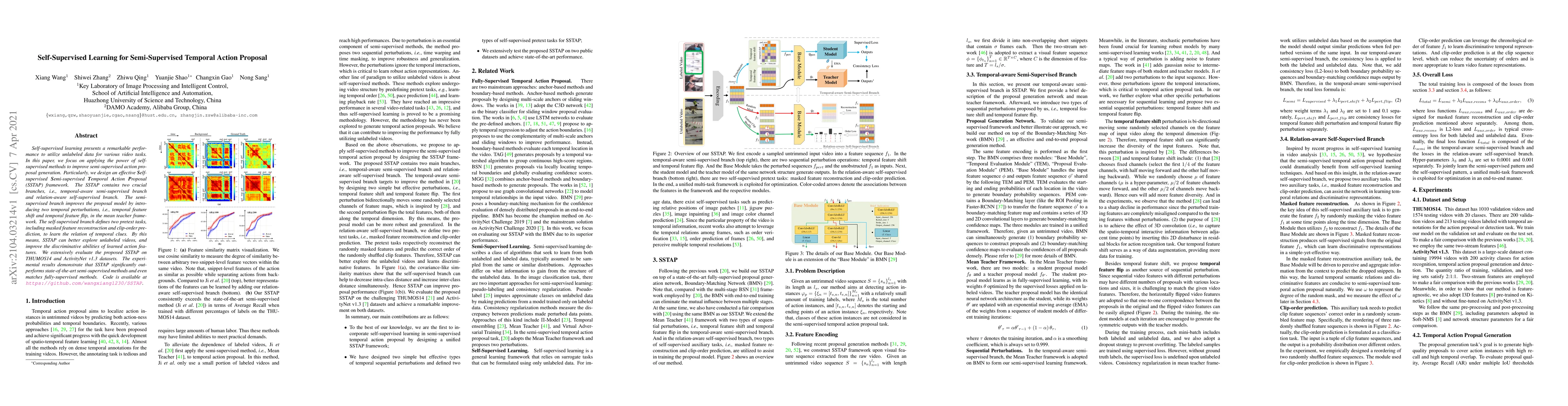 This paper proposes a Self-Supervised Semi-supervised Temporal Action Proposal (SSTAP) framework to enhance semi-supervised action proposal generation using self-supervised learning. The framework integrates temporal-aware semi-supervised and relation-aware self-supervised branches, achieving superior performance on THUMOS14 and ActivityNet v1.3 datasets.