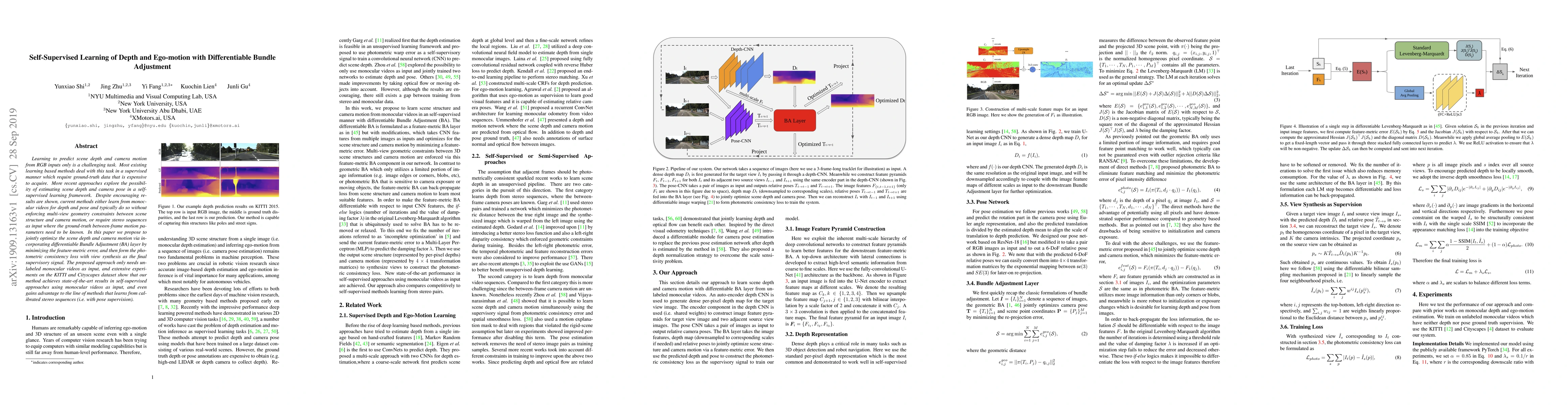 This paper proposes a self-supervised learning method for predicting scene depth and camera motion from unlabeled monocular videos using a differentiable Bundle Adjustment layer to enforce multi-view geometry constraints, achieving state-of-the-art results compared to supervised and stereo-based methods.