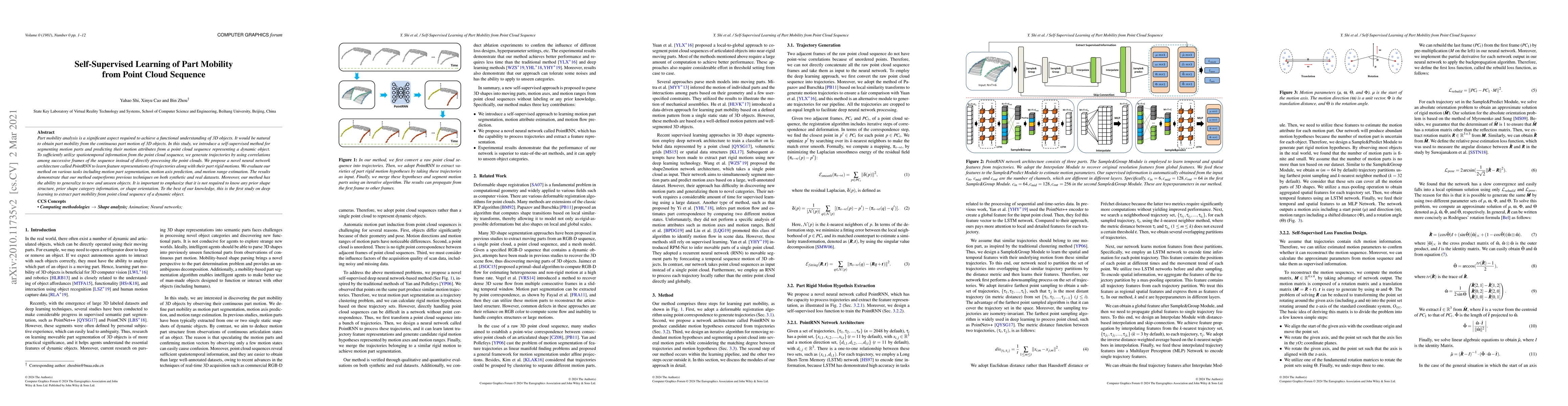 Part mobility analysis is a significant aspect required to achieve a functional understanding of 3D objects. It would be natural to obtain part mobility from the continuous part motion of 3D objects. In this study, we introduce a self-supervised method for segmenting motion parts and predicting their motion attributes from a point cloud sequence representing a dynamic object. To sufficiently utilize spatiotemporal information from the point cloud sequence, we generate trajectories by using correlations among successive frames of the sequence instead of directly processing the point clouds. We propose a novel neural network architecture called PointRNN to learn feature representations of trajectories along with their part rigid motions. We evaluate our method on various tasks including motion part segmentation, motion axis prediction and motion range estimation. The results demonstrate that our method outperforms previous techniques on both synthetic and real datasets. Moreover, our method has the ability to generalize to new and unseen objects. It is important to emphasize that it is not required to know any prior shape structure, prior shape category information, or shape orientation. To the best of our knowledge, this is the first study on deep learning to extract part mobility from point cloud sequence of a dynamic object.