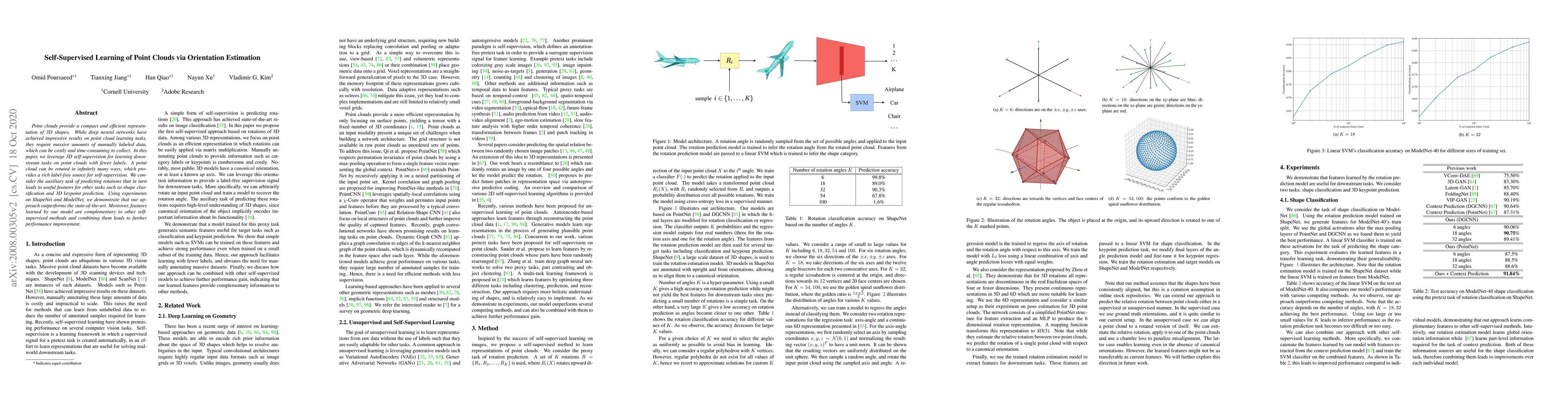 This paper proposes a self-supervised method for learning features from point clouds by estimating their orientation through rotation prediction, reducing reliance on labeled data. Experiments show it outperforms state-of-the-art methods on ShapeNet and ModelNet, and combining its features with other self-supervised methods further enhances performance.