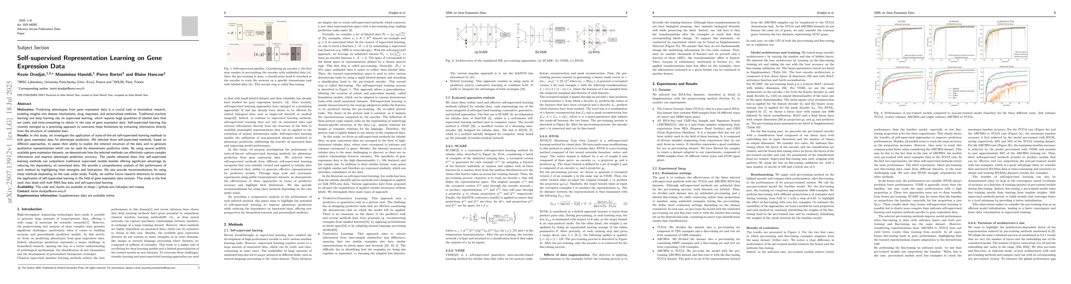 Predicting phenotypes from gene expression data is a crucial task in biomedical research, enabling insights into disease mechanisms, drug responses, and personalized medicine. Traditional machine learning and deep learning rely on supervised learning, which requires large quantities of labeled data that are costly and time-consuming to obtain in the case of gene expression data. Self-supervised learning has recently emerged as a promising approach to overcome these limitations by extracting information directly from the structure of unlabeled data. In this study, we investigate the application of state-of-the-art self-supervised learning methods to bulk gene expression data for phenotype prediction. We selected three self-supervised methods, based on different approaches, to assess their ability to exploit the inherent structure of the data and to generate qualitative representations which can be used for downstream predictive tasks. By using several publicly available gene expression datasets, we demonstrate how the selected methods can effectively capture complex information and improve phenotype prediction accuracy. The results obtained show that self-supervised learning methods can outperform traditional supervised models besides offering significant advantage by reducing the dependency on annotated data. We provide a comprehensive analysis of the performance of each method by highlighting their strengths and limitations. We also provide recommendations for using these methods depending on the case under study. Finally, we outline future research directions to enhance the application of self-supervised learning in the field of gene expression data analysis. This study is the first work that deals with bulk RNA-Seq data and self-supervised learning.