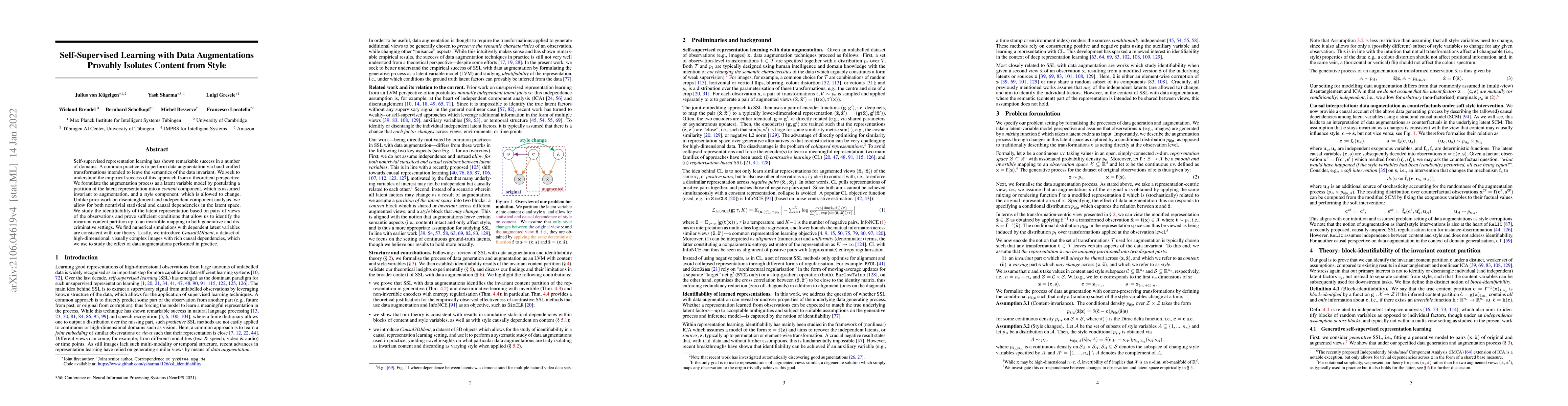 A new research paper explores how self-supervised learning with data augmentations can isolate content from style, improving its ability to identify invariant content partitions. It proves sufficient conditions for identifying these partitions in generative and discriminative settings.