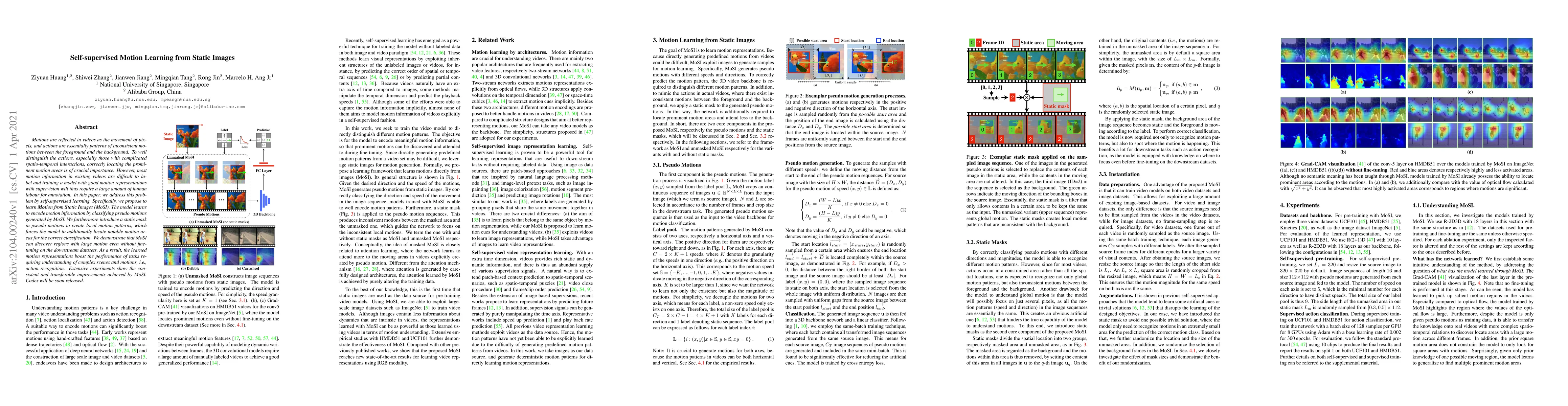 Researchers propose a self-supervised learning approach to extract motion information from static images, achieving improved performance in action recognition tasks without requiring human annotation or fine-tuning on downstream datasets.