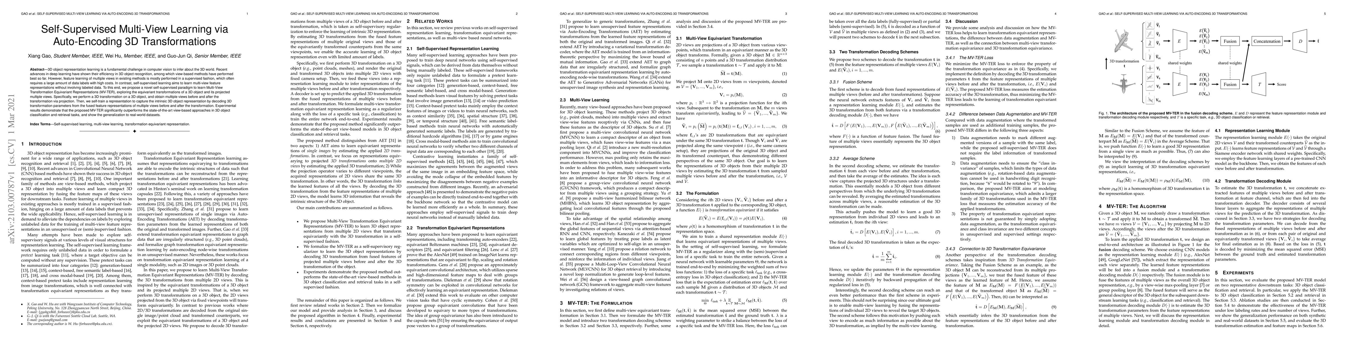 This paper proposes a self-supervised learning paradigm for 3D object representation using multi-view transformations. It introduces Multi-View Transformation Equivariant Representations (MV-TER) to capture intrinsic 3D object features without labeled data, achieving superior performance in 3D object classification and retrieval.