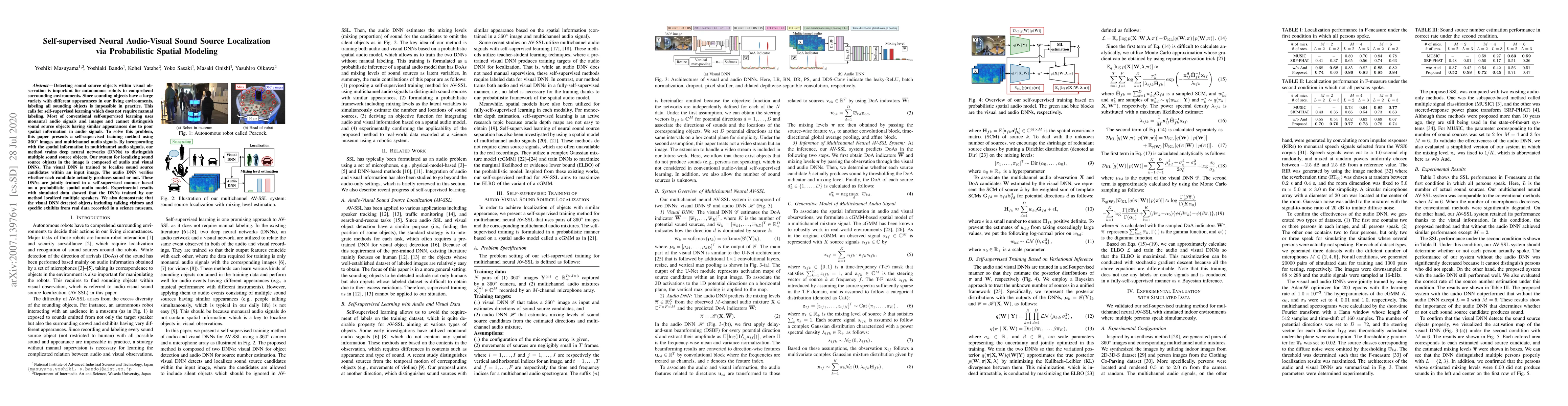 This paper proposes a self-supervised neural network for audio-visual sound source localization using probabilistic spatial modeling. The method leverages 360° images and multichannel audio to distinguish sound sources with similar appearances, achieving better localization compared to conventional self-supervised methods.