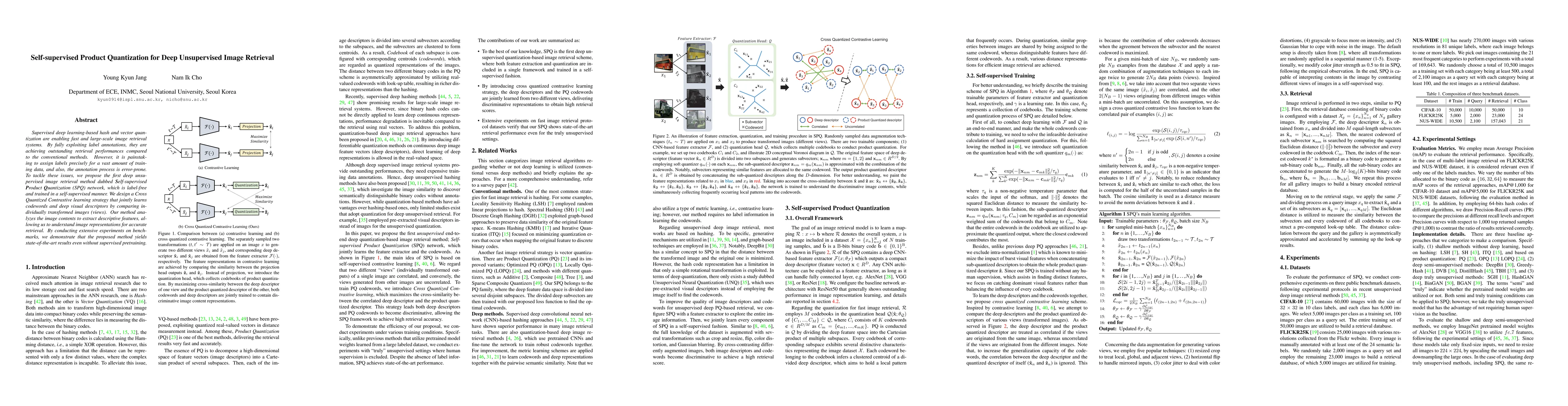 This paper introduces a self-supervised product quantization network (SPQ) for unsupervised image retrieval, employing a Cross Quantized Contrastive learning strategy to compare transformed image views. The method achieves state-of-the-art performance without requiring labeled data, addressing the challenges of annotation and ensuring accurate image retrieval.
