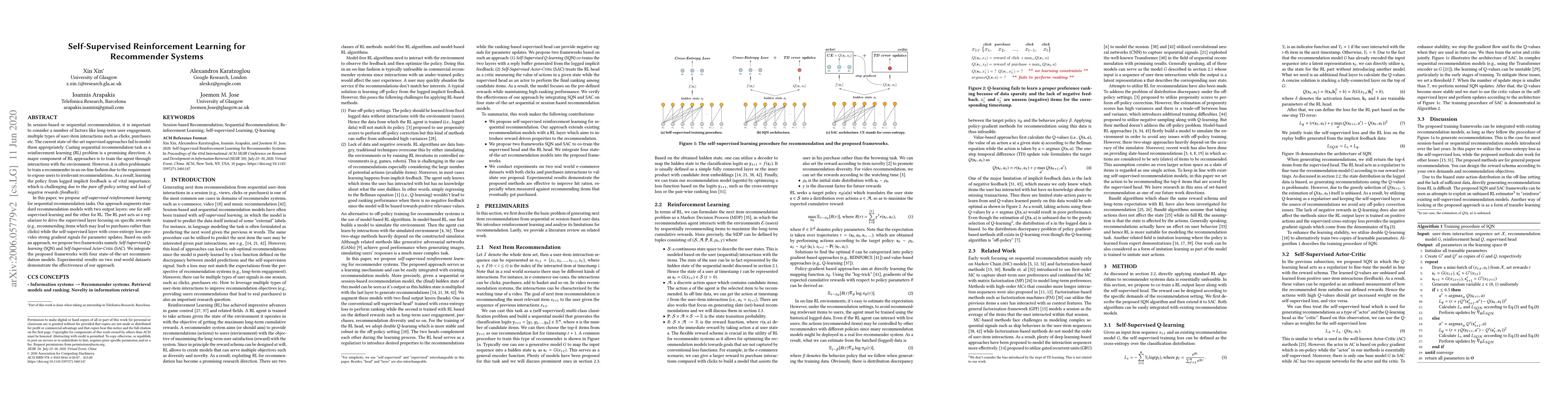 This paper proposes self-supervised reinforcement learning frameworks (Self-Supervised Q-learning and Self-Supervised Actor-Critic) for sequential recommendation systems, integrating them with four state-of-the-art recommendation models to improve long-term user engagement by focusing on specific rewards like purchases. Experimental results show the effectiveness of the proposed approach on real-world datasets.