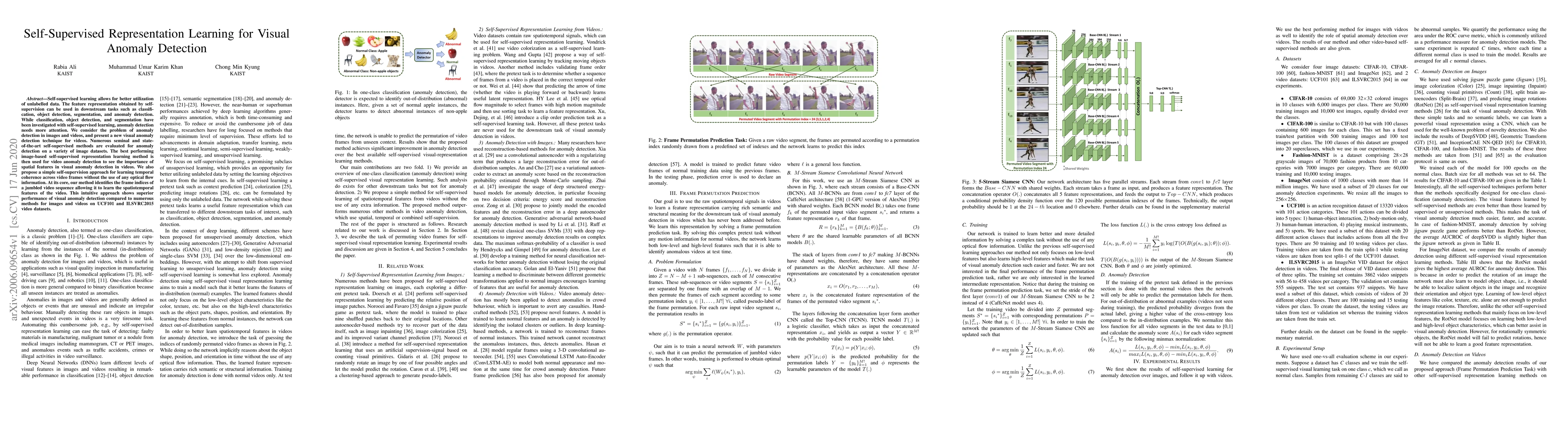 This paper explores self-supervised learning for visual anomaly detection in images and videos, proposing a novel technique that leverages spatial and temporal features without optical flow. The method outperforms existing image and video anomaly detection methods on UCF101 and ILSVRC2015 datasets.
