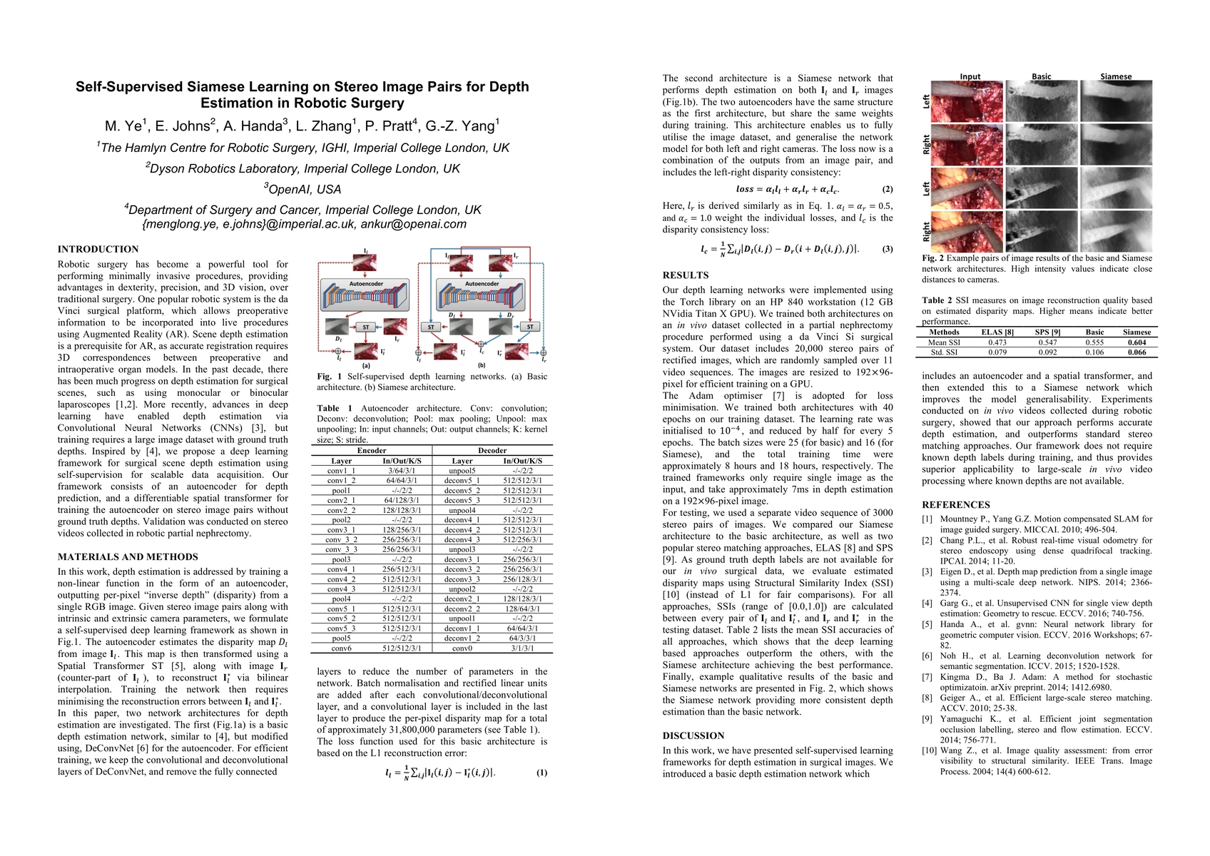 This paper proposes a self-supervised Siamese learning framework for depth estimation in robotic surgery using stereo image pairs, eliminating the need for ground truth depth data. The method employs an autoencoder and a spatial transformer, validated on robotic partial nephrectomy videos.