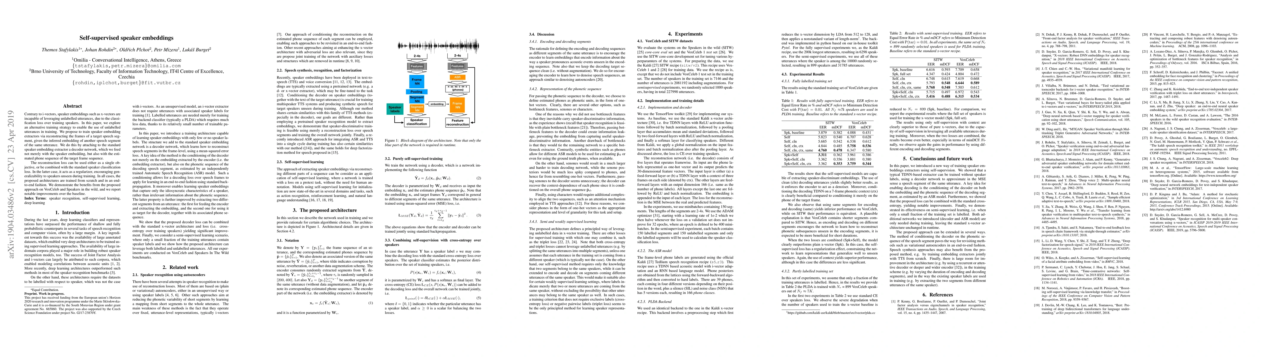 Researchers propose a new approach to speaker embeddings that allows for training with unlabelled utterances, resulting in notable improvements over existing methods on VoxCeleb and Speakers in the wild.