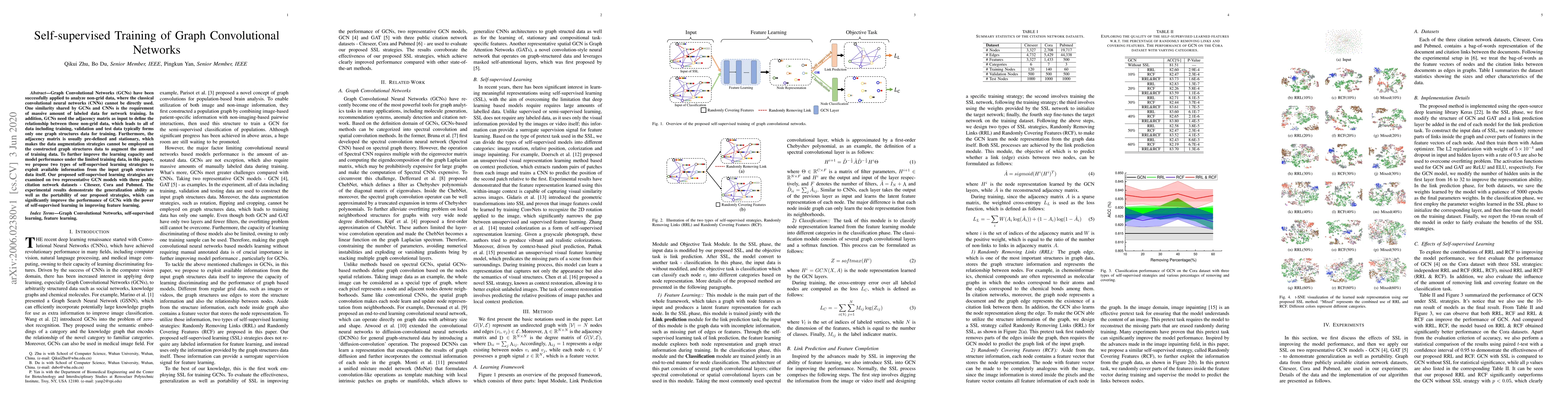 This paper proposes self-supervised learning strategies to enhance Graph Convolutional Networks (GCNs) when labeled data is limited. The methods leverage information from the input graph structure to improve feature learning, demonstrated on citation networks to show significant performance gains.