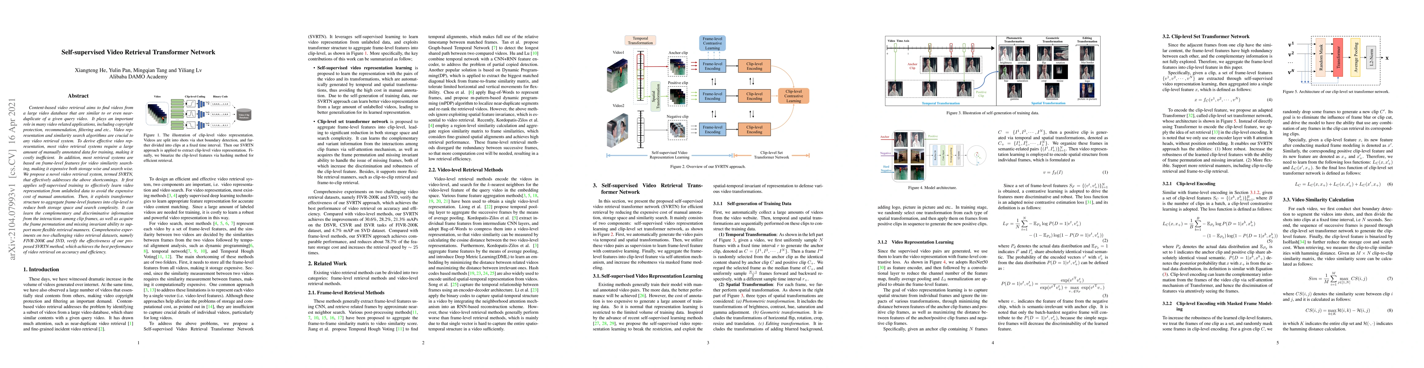 The SVRTN video retrieval system learns effective video representation from unlabeled data using self-supervised training and transformer structure, achieving better accuracy and efficiency than existing methods on two challenging datasets.