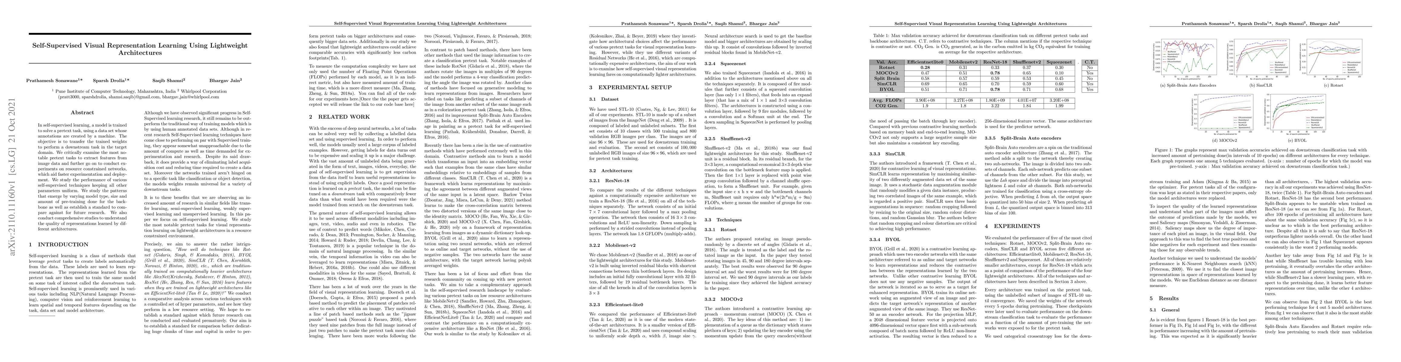 This paper explores self-supervised visual representation learning using lightweight architectures to improve model performance on downstream tasks, comparing various techniques and establishing a standard for future research.